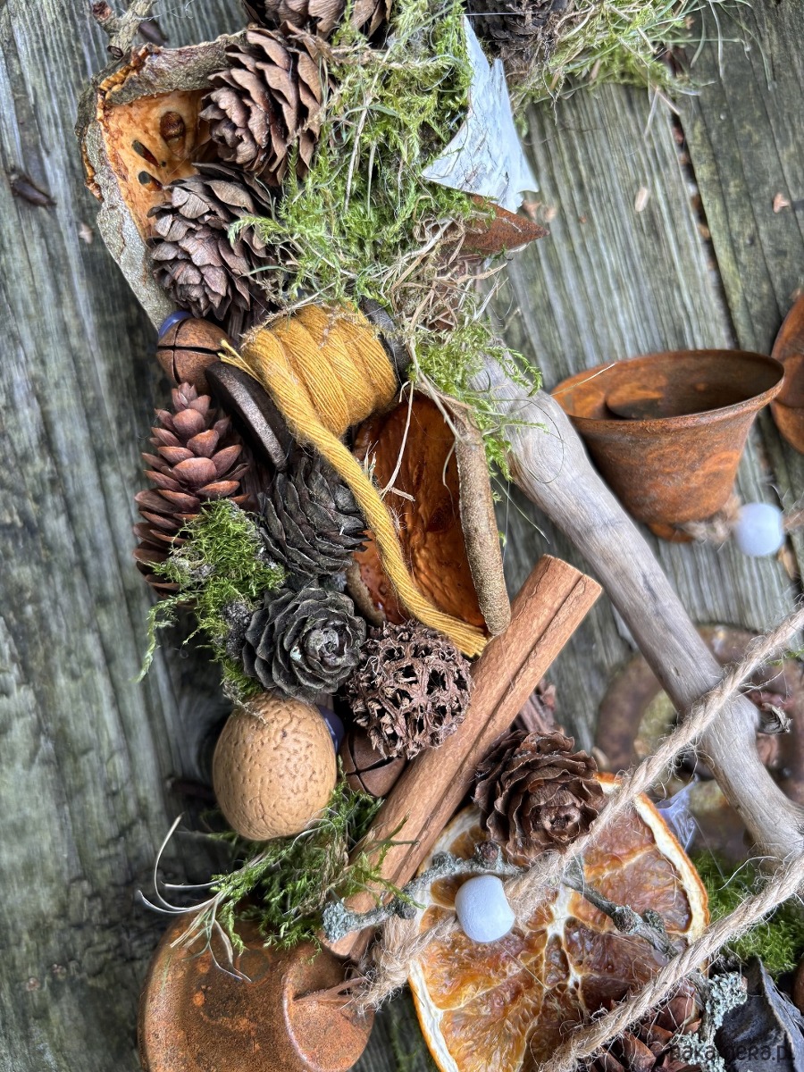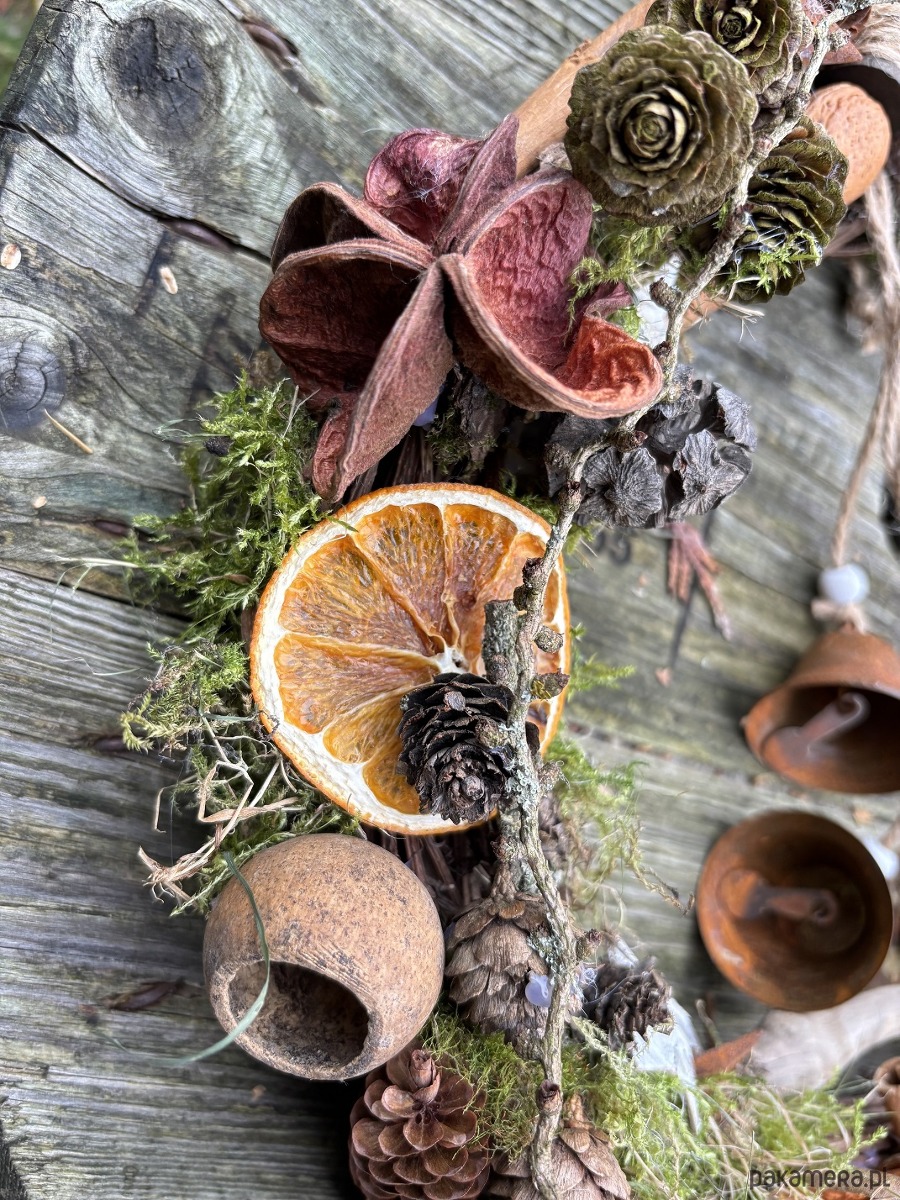 Znajdziecie tu suszone pomarańcze i melony, szyszki eukaliptusa i modrzewia, laski cynamonu, migdały i inne naturalne ozdoby.
