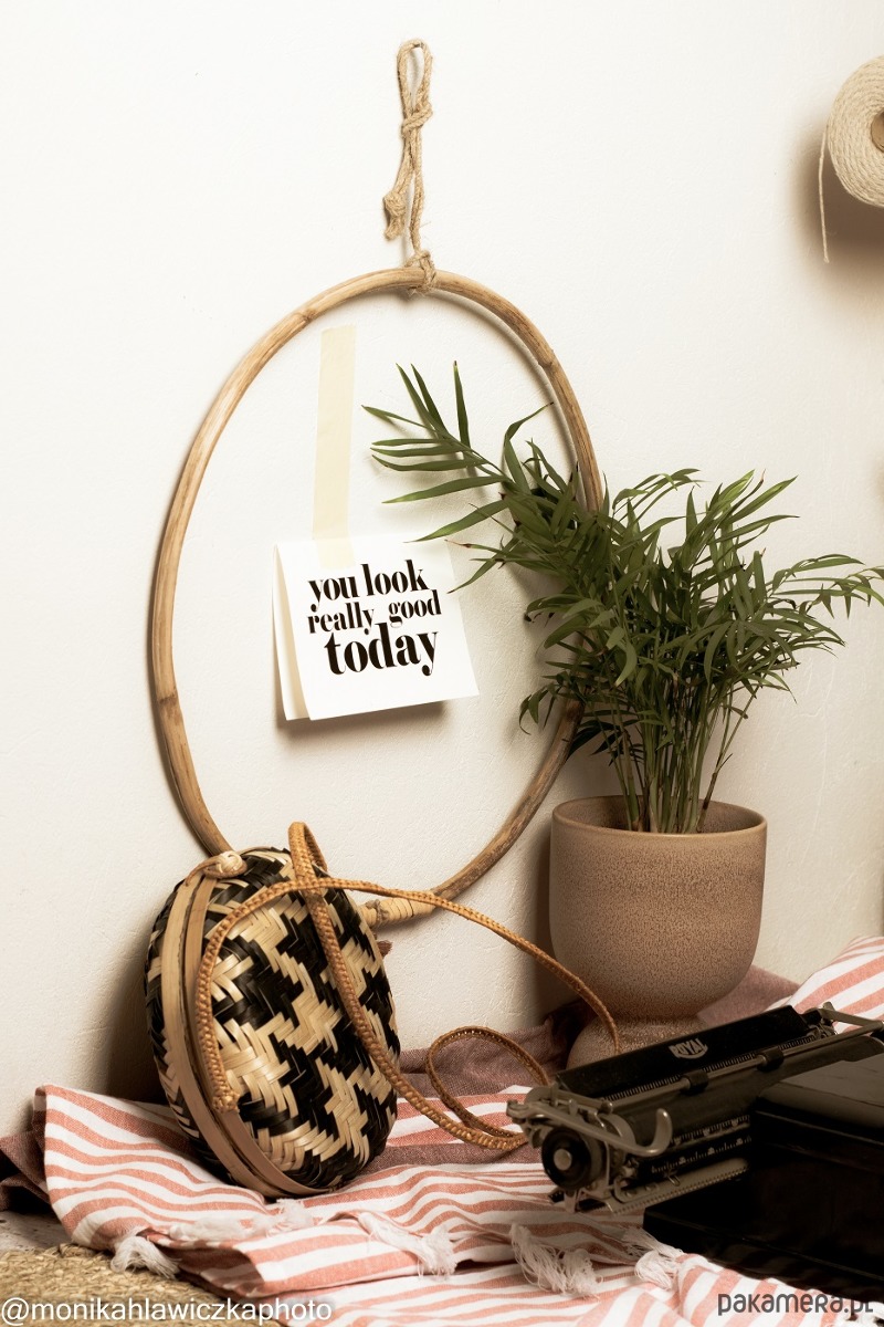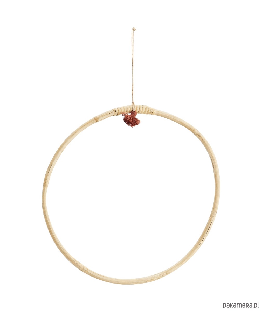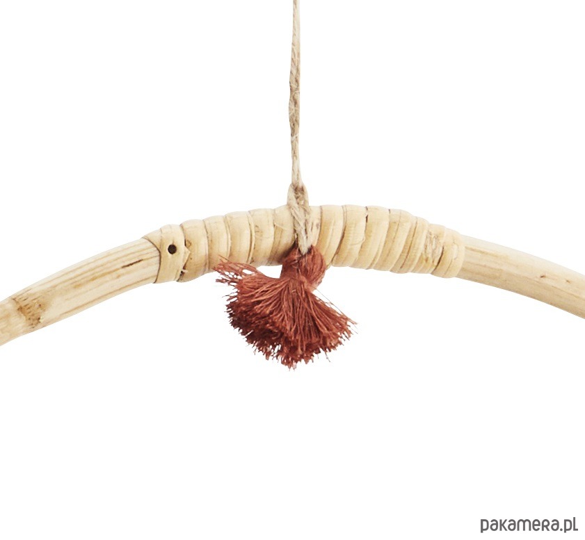 Bambusowe koło z frędzlem to wszechstronna dekoracja w stylu boho. Możesz powiesić ją na ścianie lub pod sufitem jako samodzielną dekorację ale świetnie też wygląda udekorowana ozdobnymi roślinami, kolorową włóczką czy zwiewnym materiałem. Koła mogą też służyć jako wieszak na chusty, krawaty tworząc dekoracyjną kompozycję. Uruchom wyobraźnię i skomponuj własną kompozycję.
