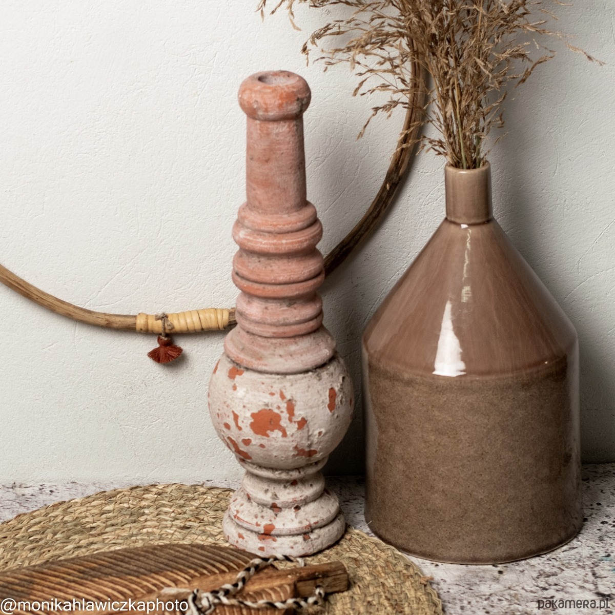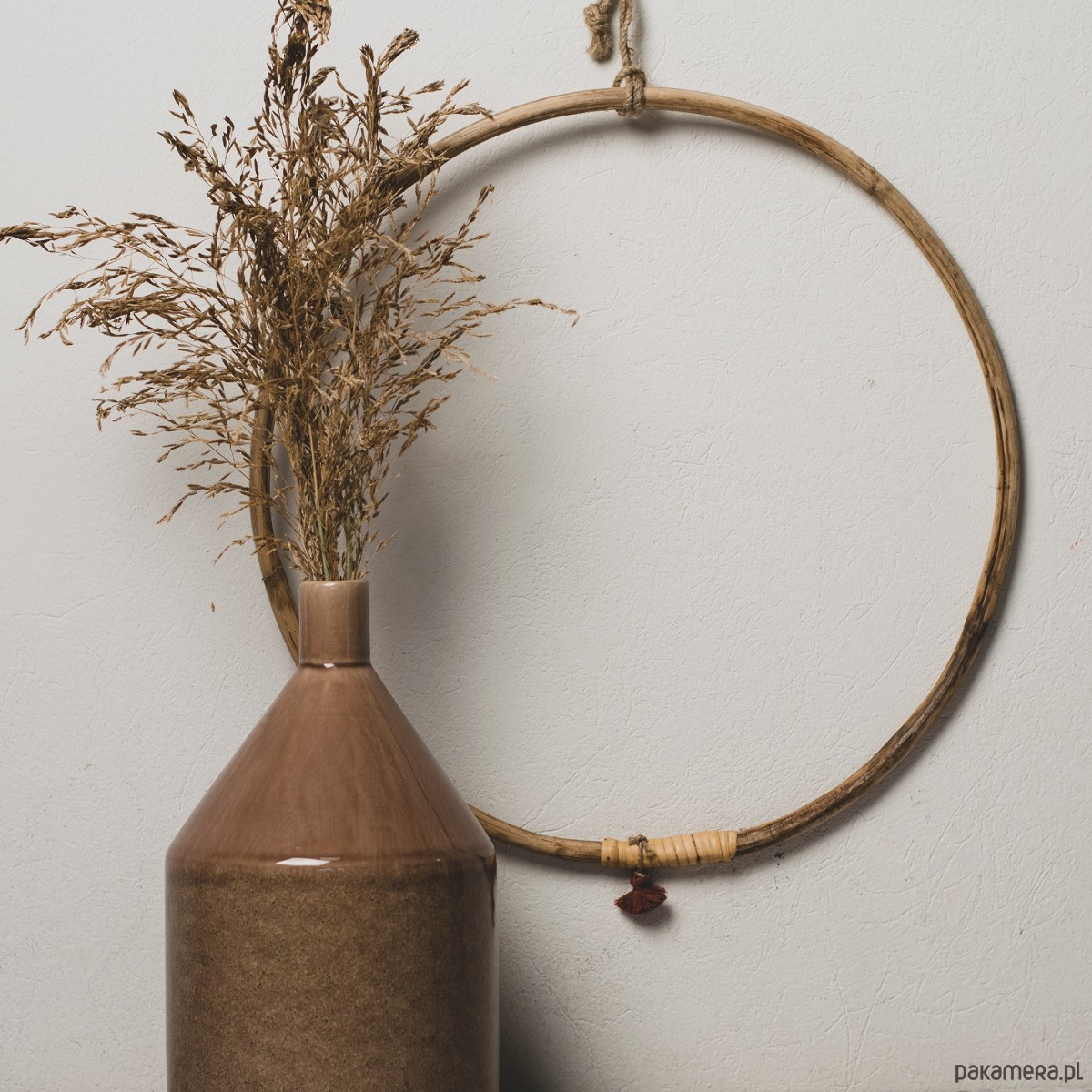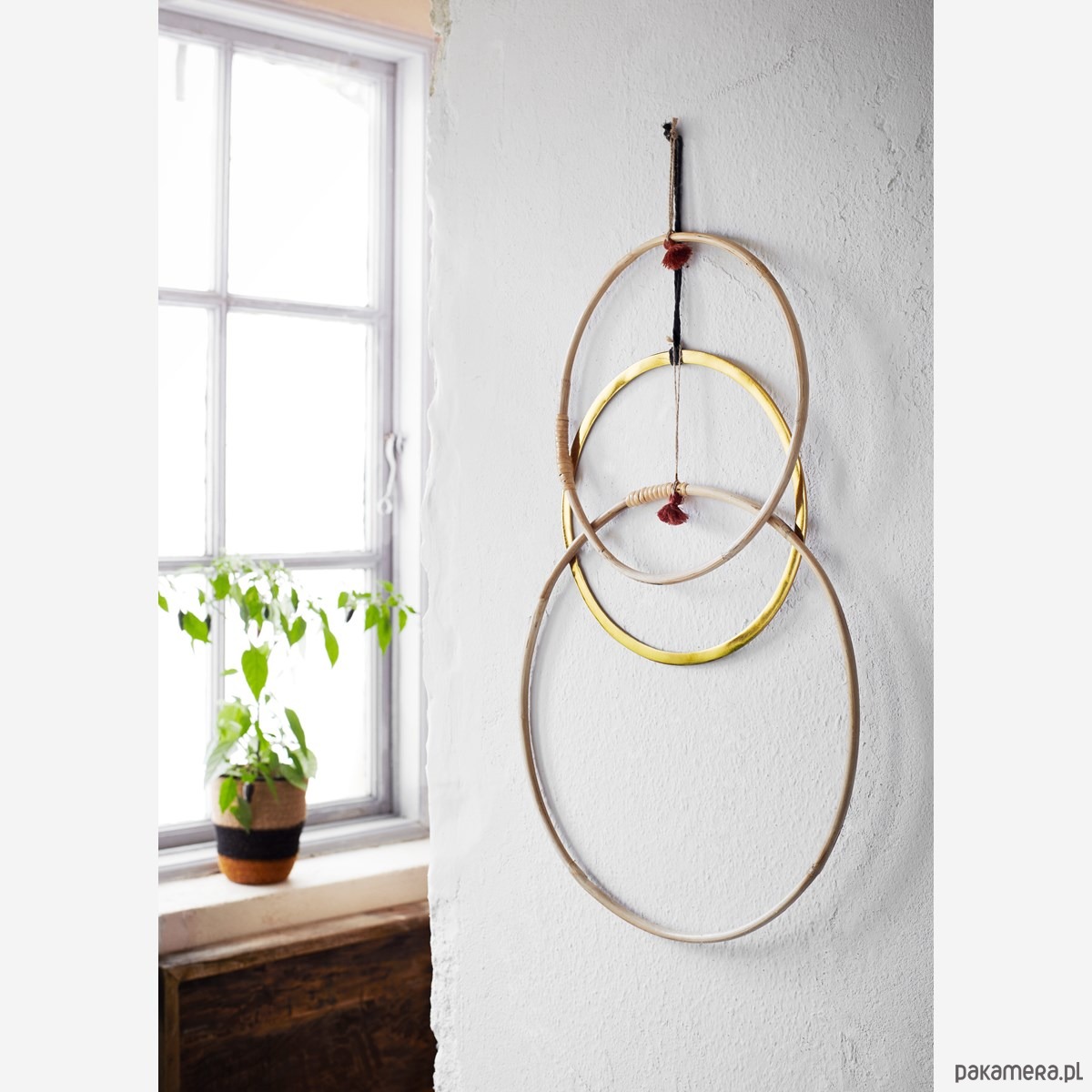 Bambusowe koło z frędzlem to wszechstronna dekoracja w stylu boho. Możesz powiesić ją na ścianie lub pod sufitem jako samodzielną dekorację ale świetnie też wygląda udekorowana ozdobnymi roślinami, kolorową włóczką czy zwiewnym materiałem. Koła mogą też służyć jako wieszak na chusty, krawaty tworząc dekoracyjną kompozycję. Uruchom wyobraźnię i skomponuj własną kompozycję.