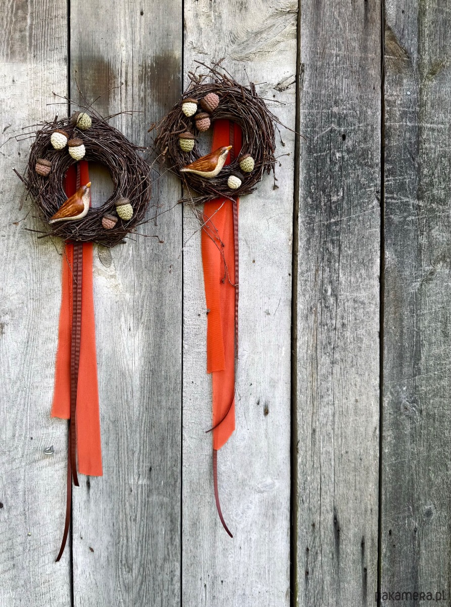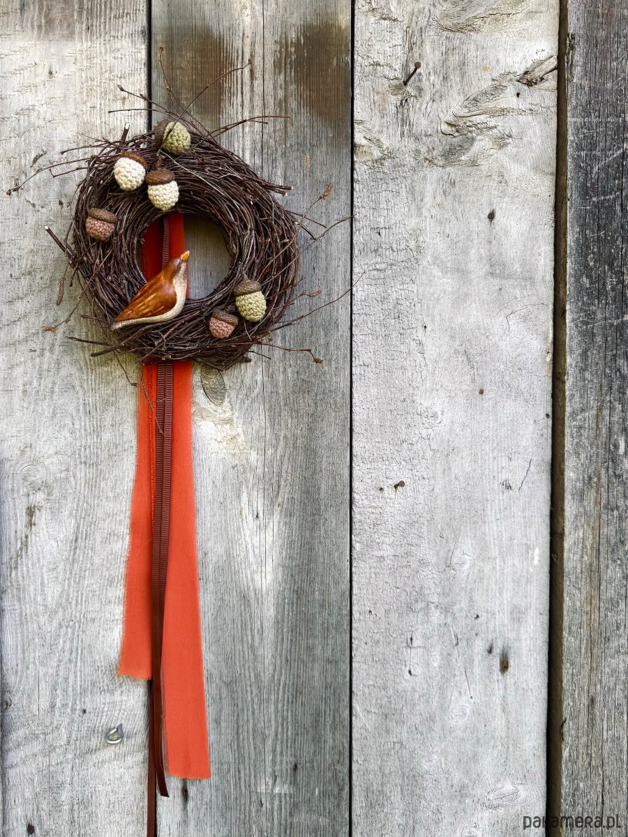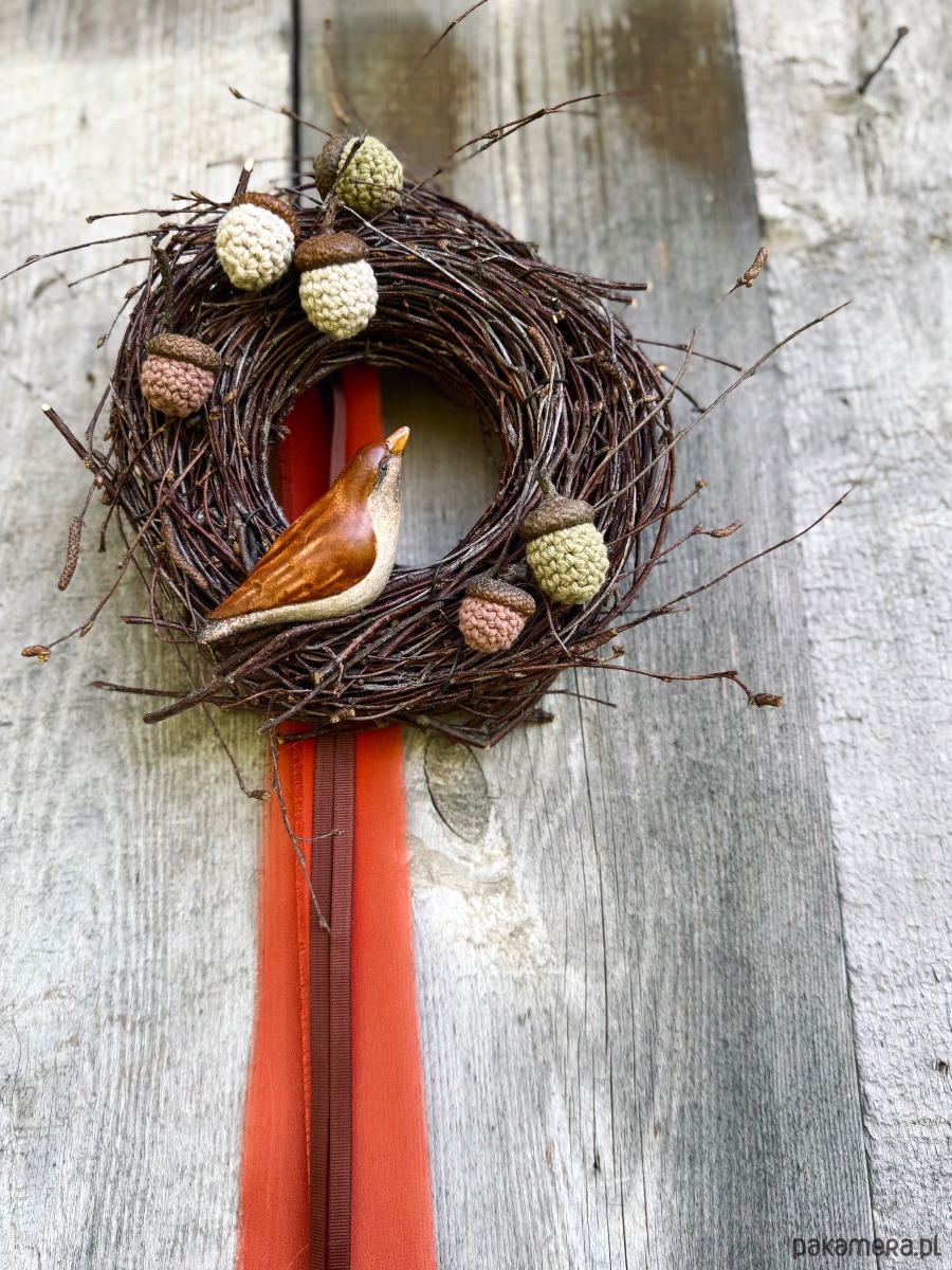 Do tego ceramiczny ptaszek i kilka żołędzi robionych na szydełku.
