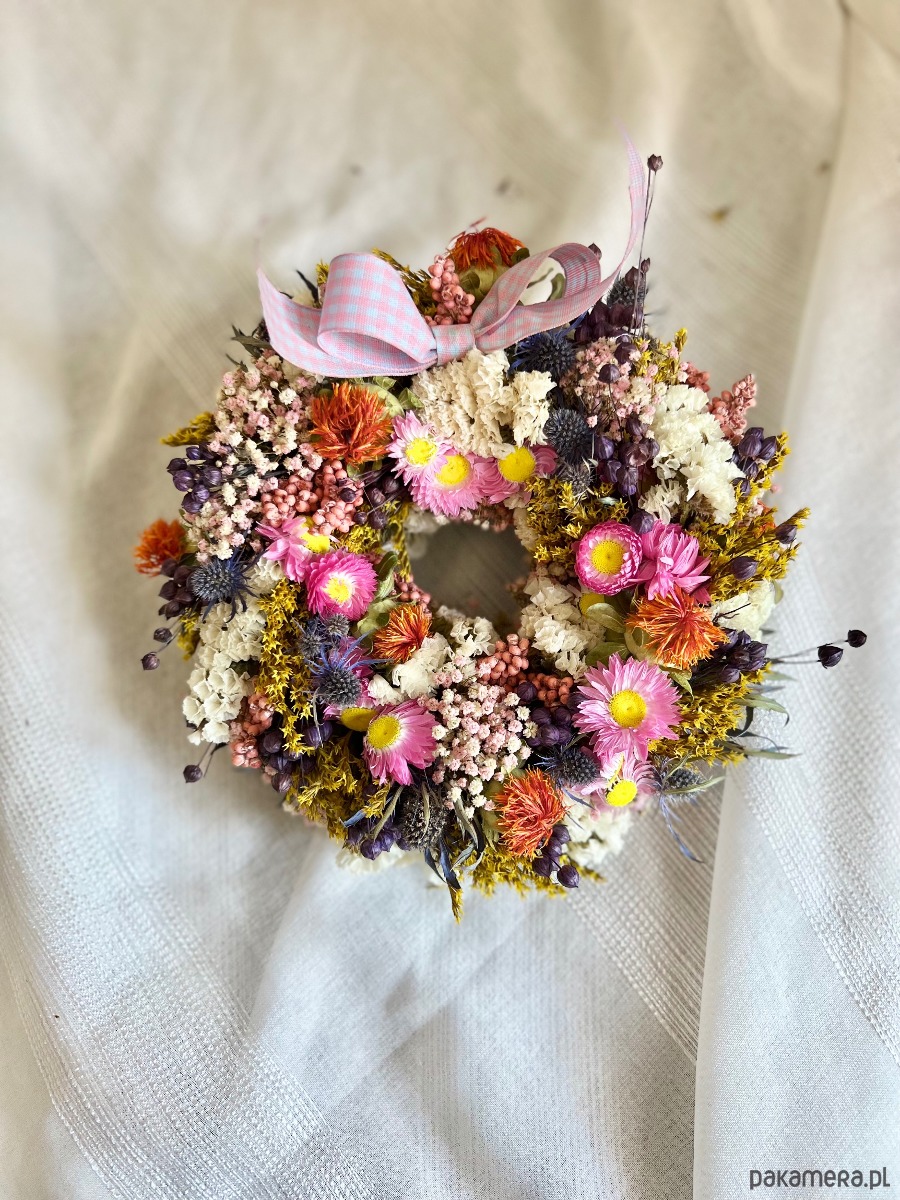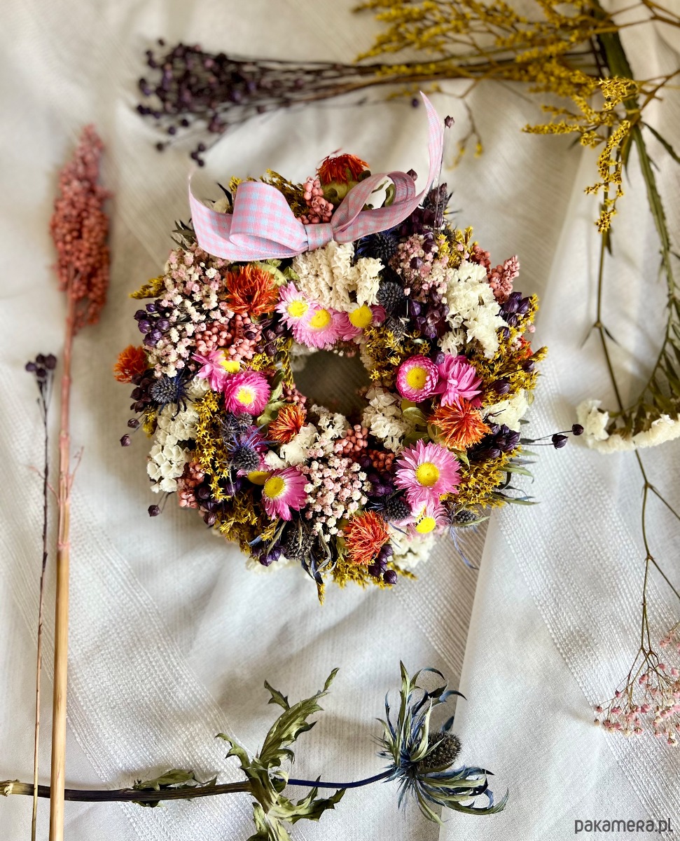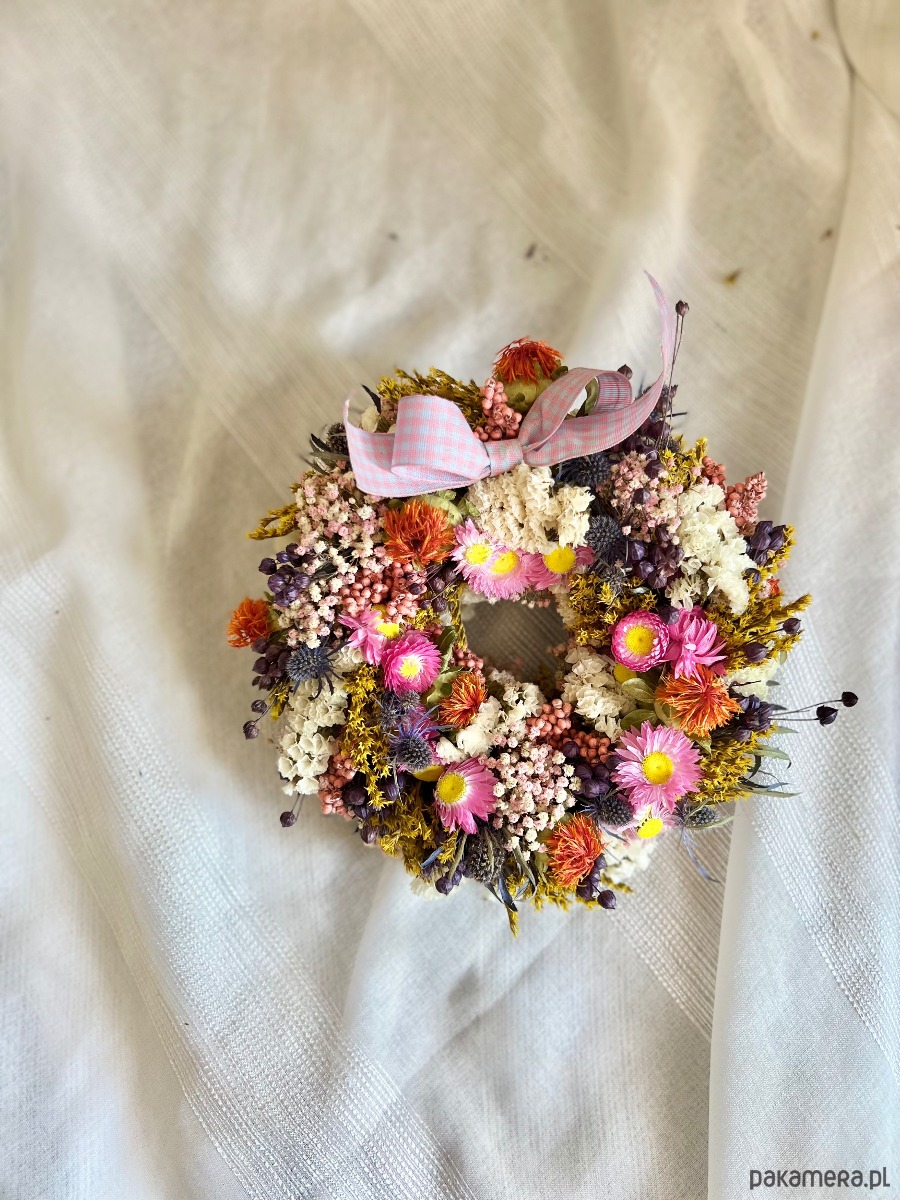 Malutki, subtelny i pachnący wianek z suszonych kwiatów.
