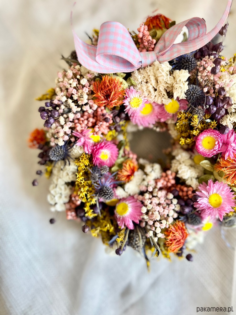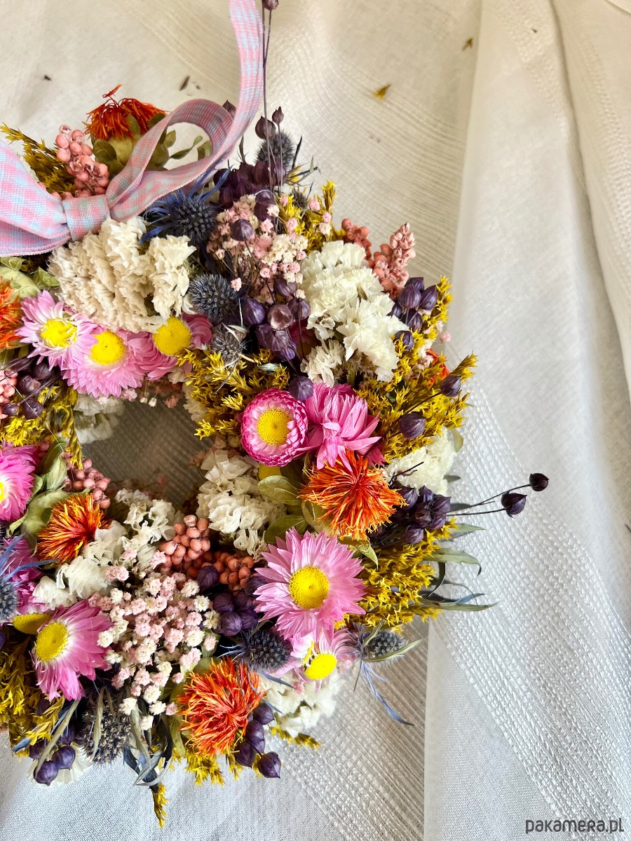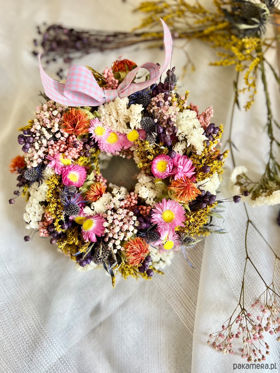 Malutki, subtelny i pachnący wianek z suszonych kwiatów.