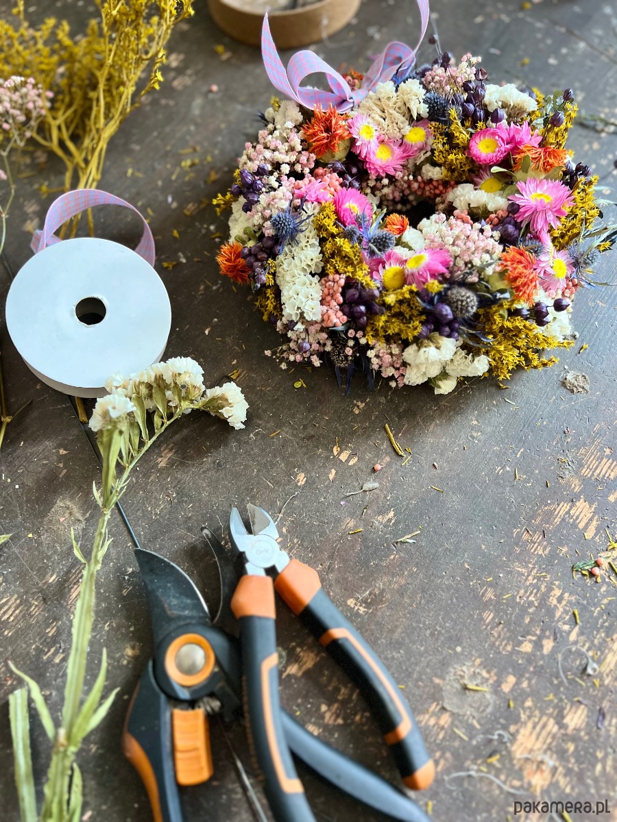 M.in.: Limonium i Gipsówka (stabilizowane w glicerynie), Sorgo, Len, Mikołajek.