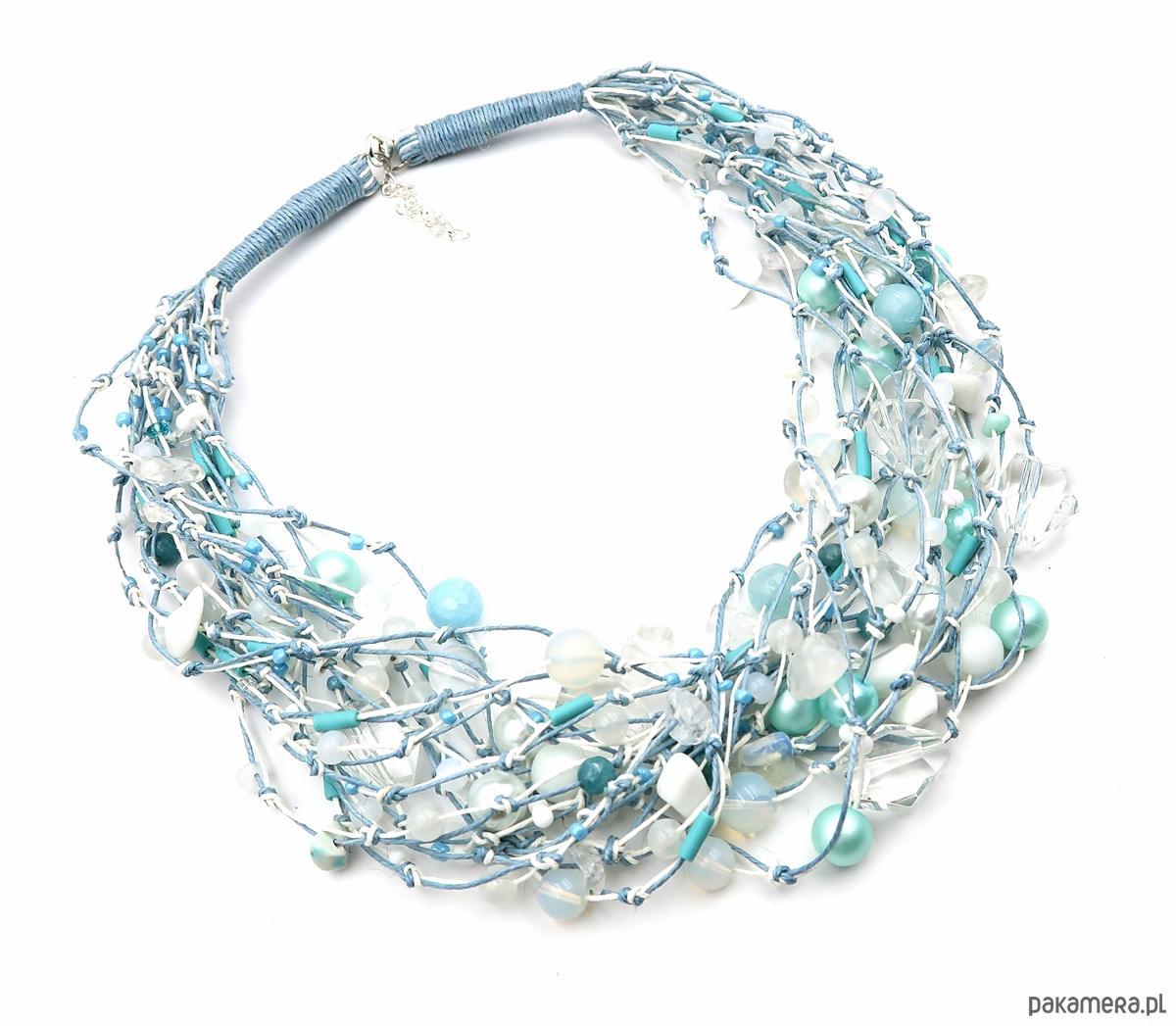 W jego splocie kryją się kryształy, lodowy kwarc, kryształ górski, agat, opal, czeskie szkło Jablonex, szklane perełki. To połączenie tworzy delikatną kolorystykę i bogatą, wielowarstwową strukturę.