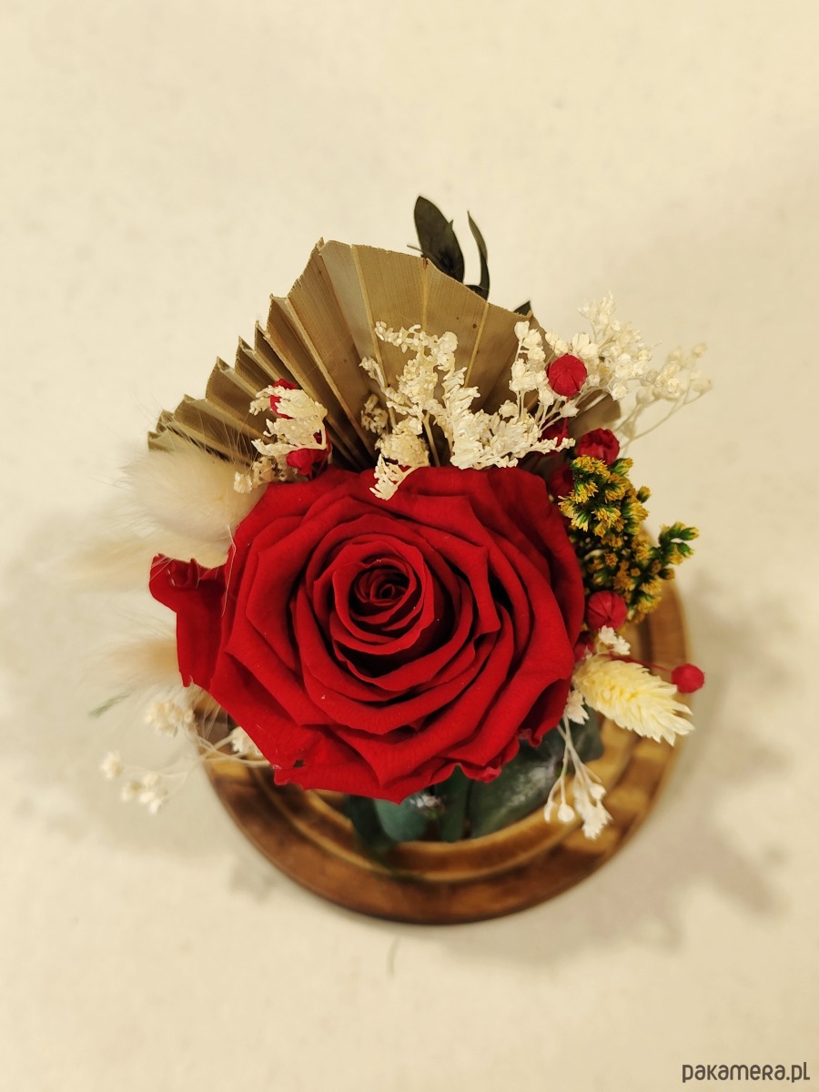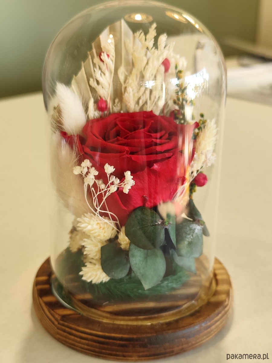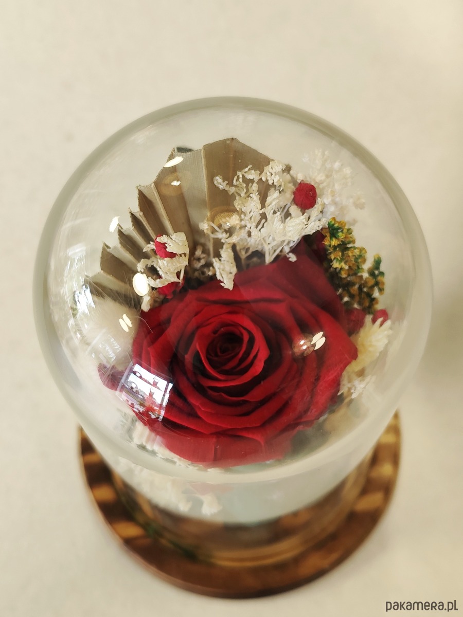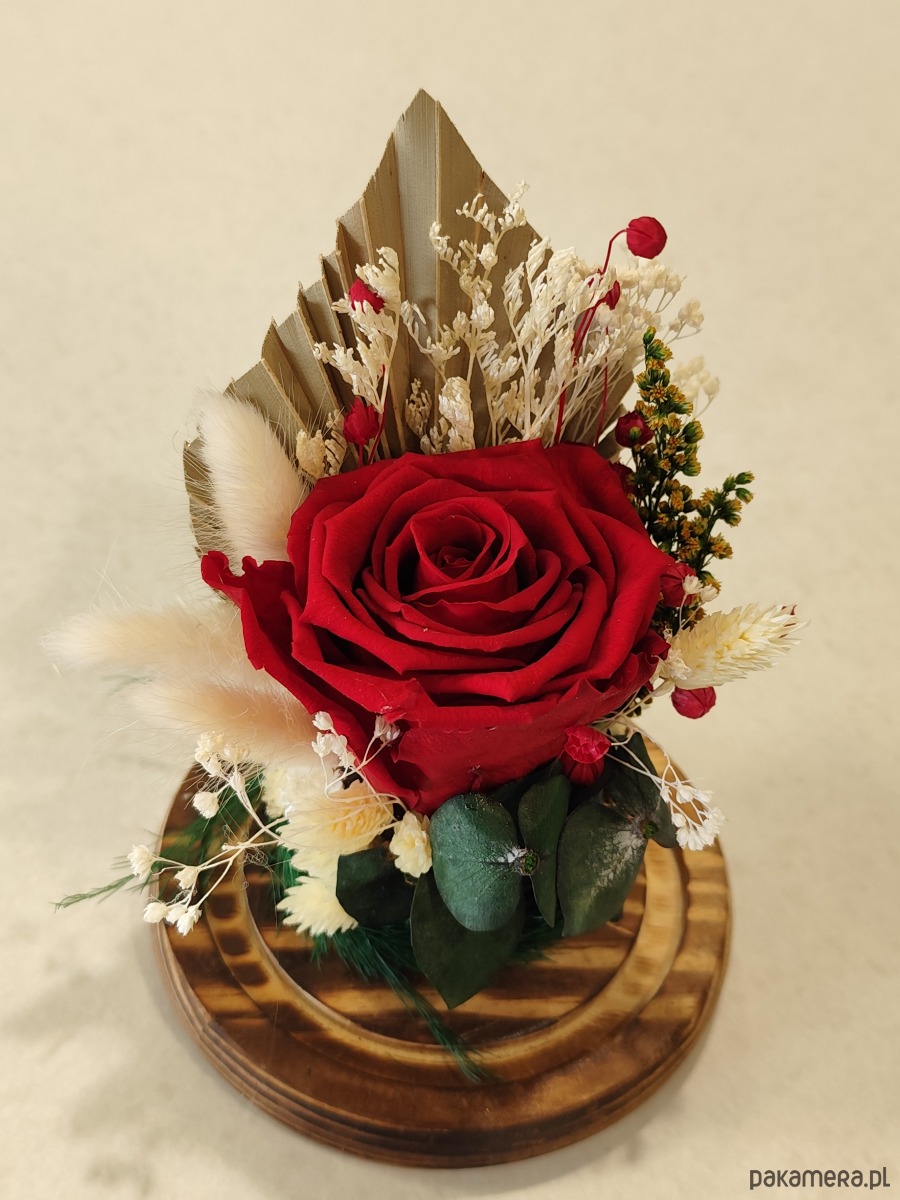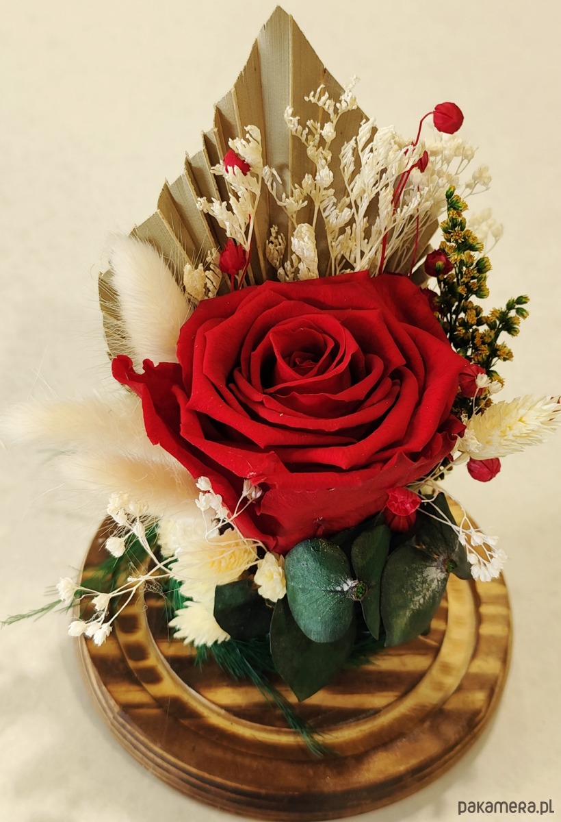 Róża stabilizowana pod kloszem – prezent dla niej, dekoracja boho