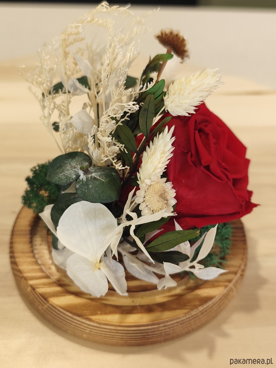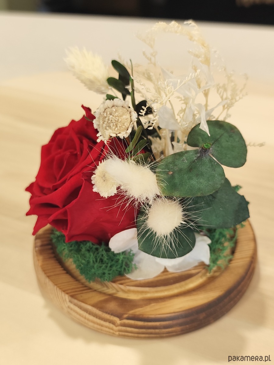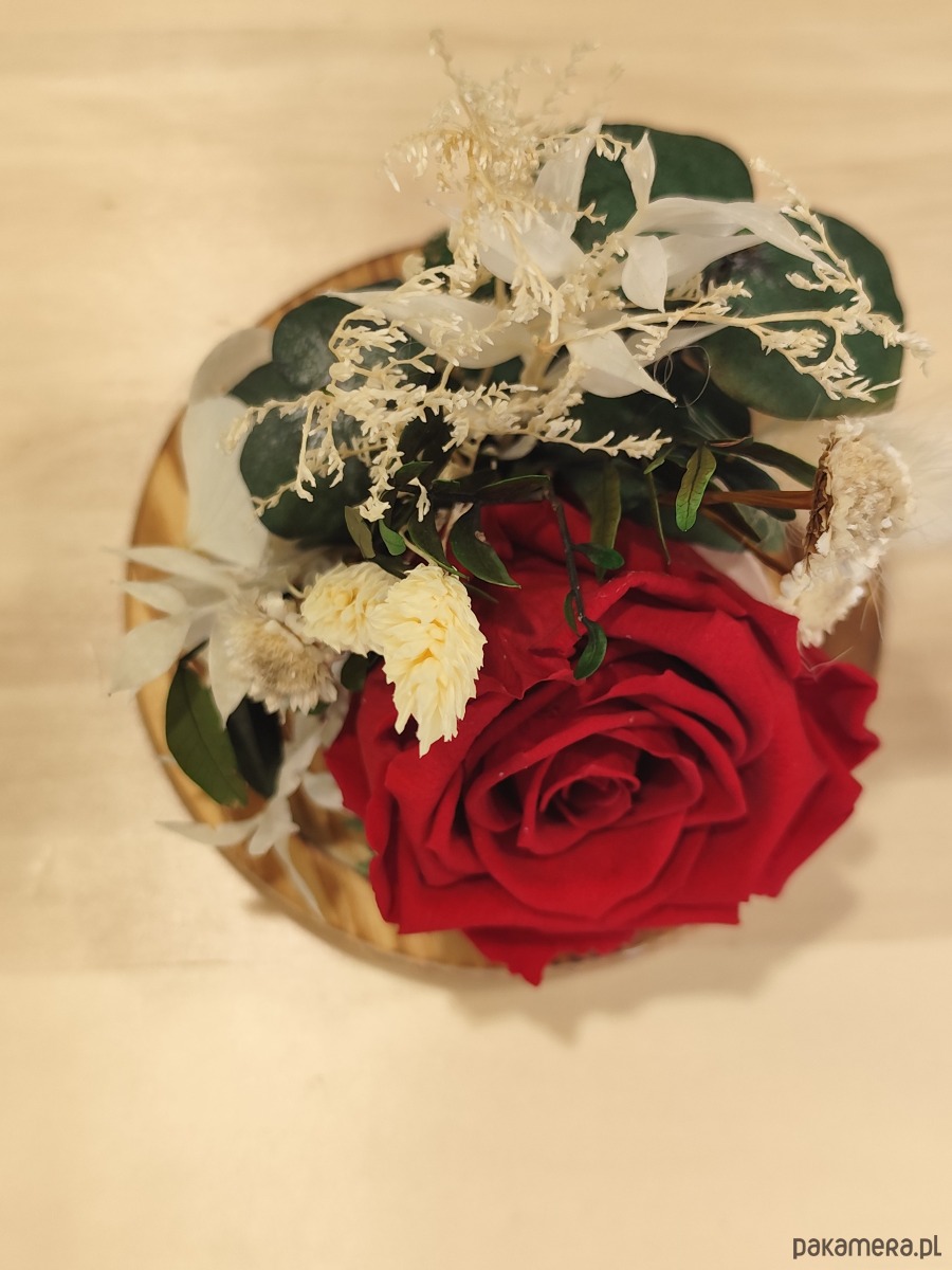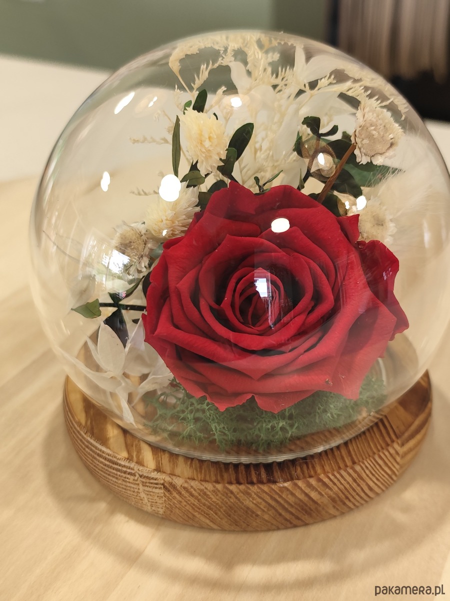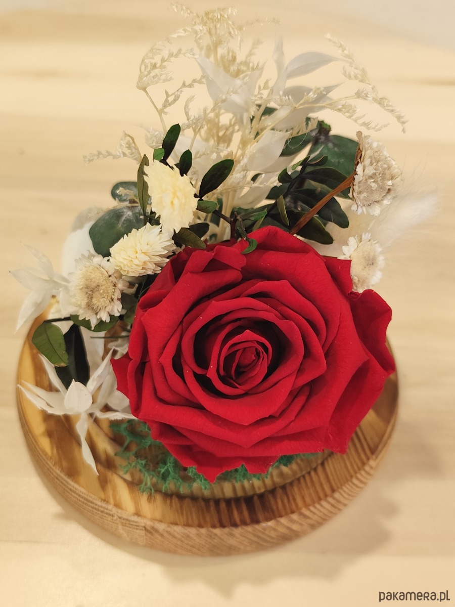 Róża stabilizowana pod kloszem – prezent dla niej, dekoracja boho