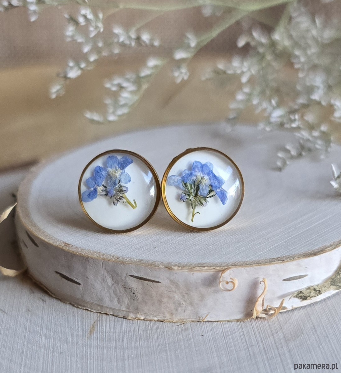 Oferuję Państwu unikalną biżuterię. Kolczyki są wykonane z suszonych kwiatów i żywicy epoksydowej. Biżuteria jest wspaniałym i oryginalnym prezentem na lata.
