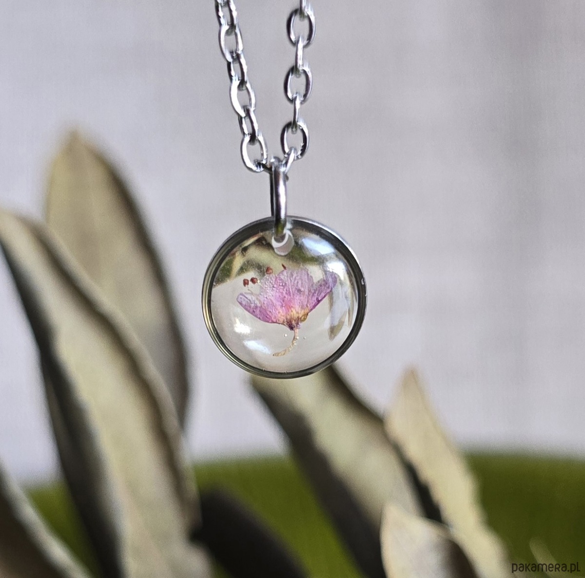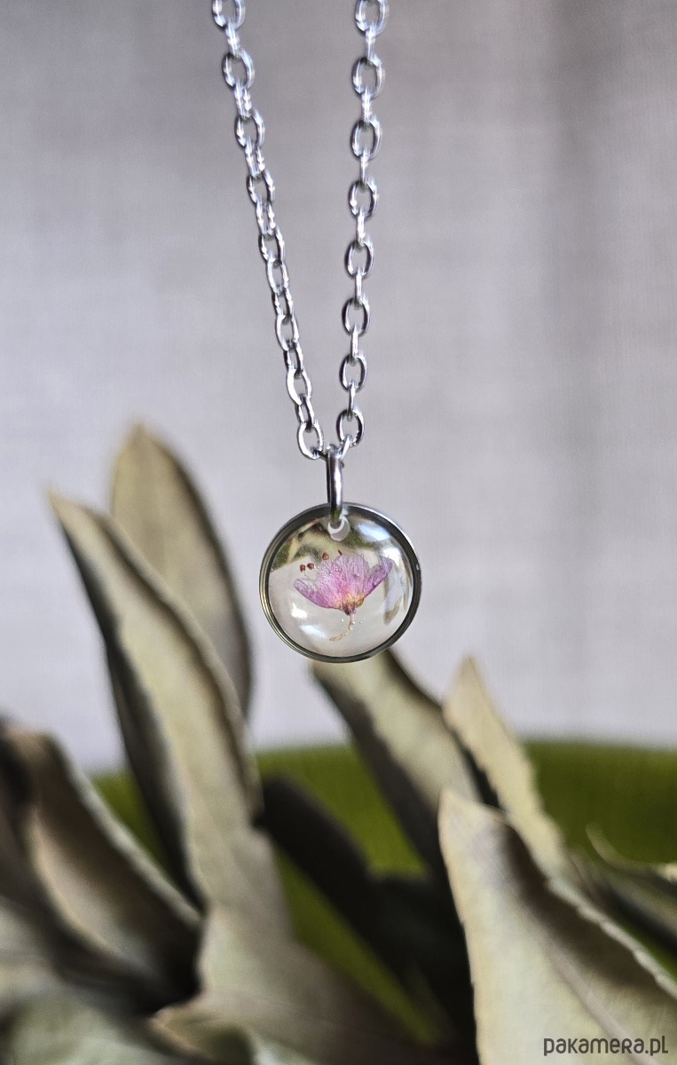 Oferuję Państwu unikalną biżuterię. Zawieszka jest wykonana z suszonych kwiatów i żywicy epoksydowej. Biżuteria jest wspaniałym i oryginalnym prezentem na lata.