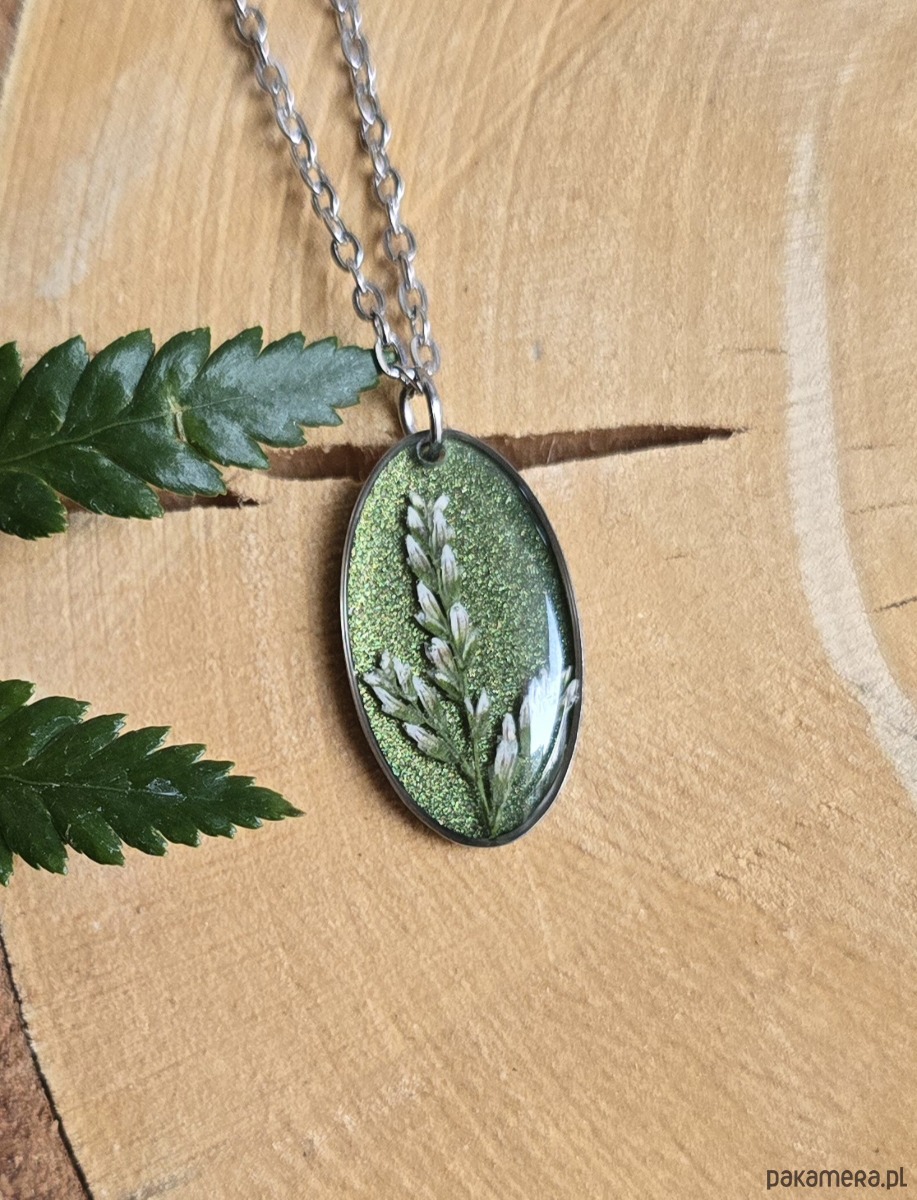 Oferuję Państwu unikalną biżuterię. Zawieszka jest wykonana z suszonych kwiatów i żywicy epoksydowej. Biżuteria jest wspaniałym i oryginalnym prezentem na lata.