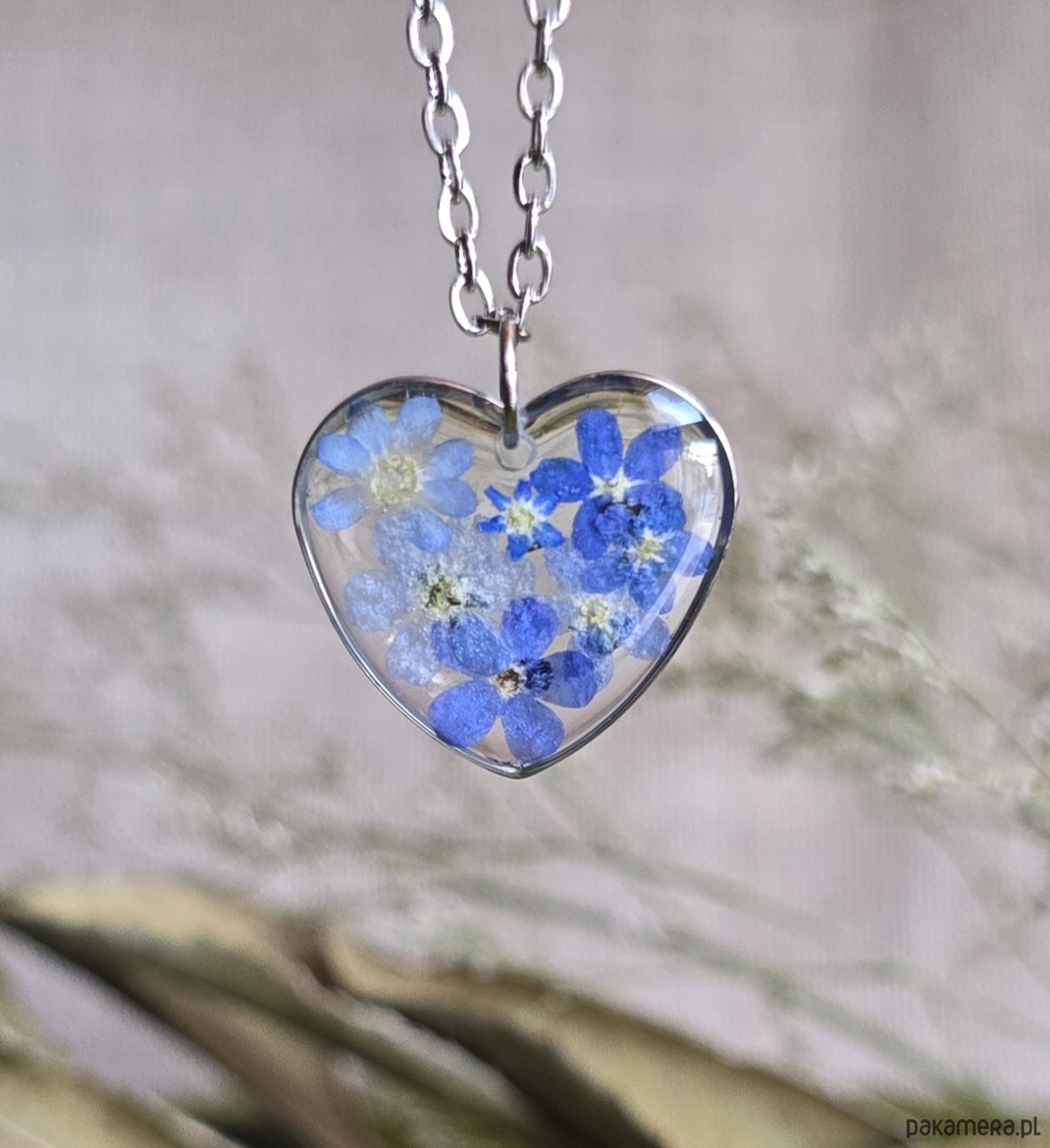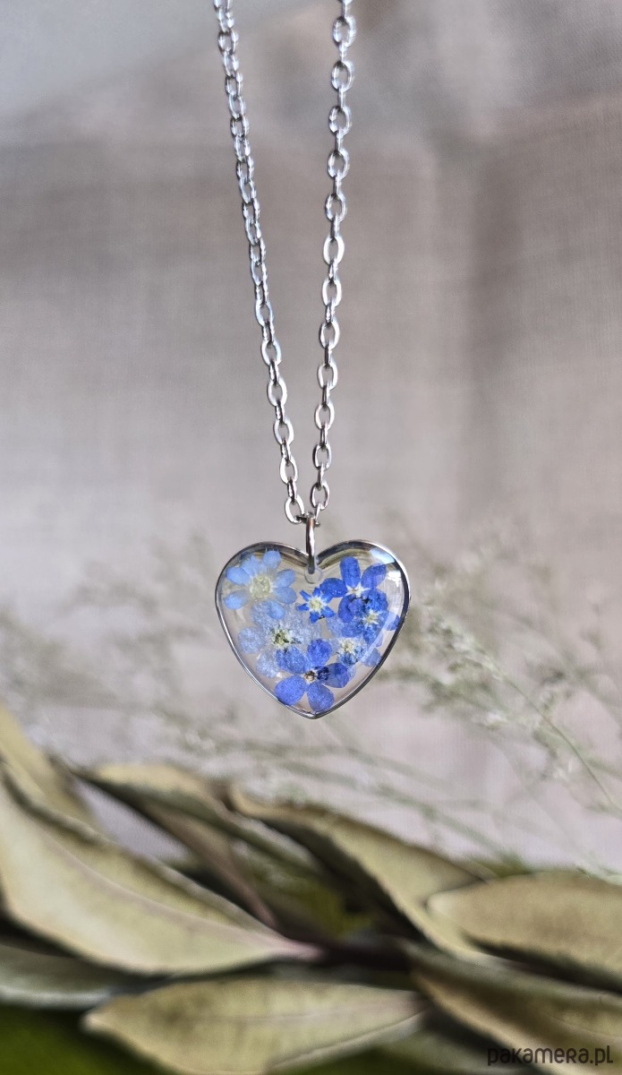 Wieczne kwiaty srebrny wisiorek kwiaty naszyjnik niezapominajki serce serduszko