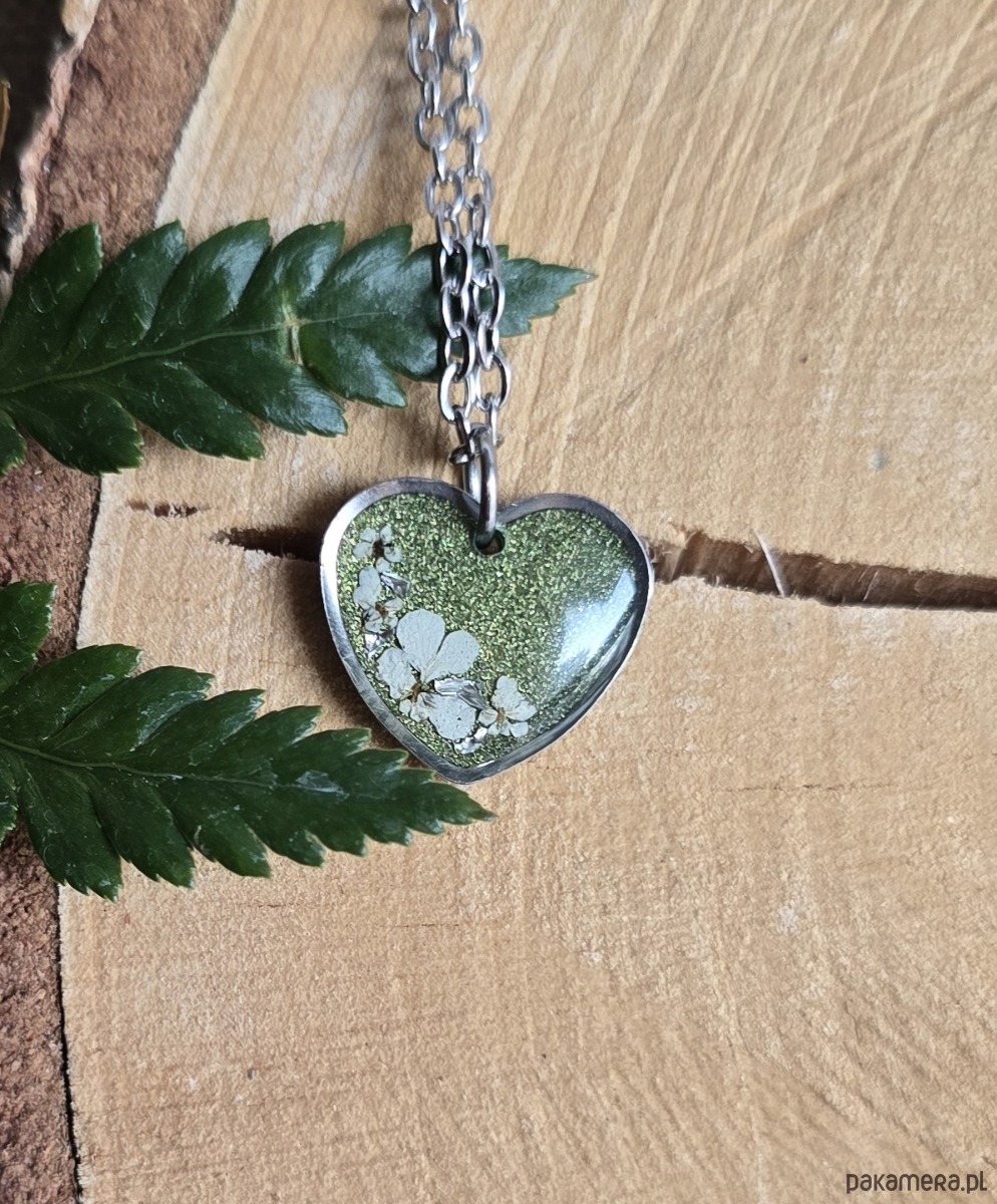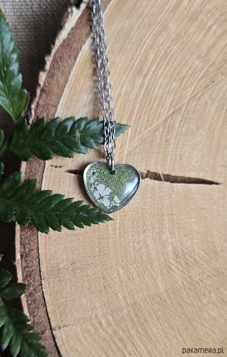 Wieczne kwiaty srebrny wisiorek prawdziwe kwiaty serce serduszko