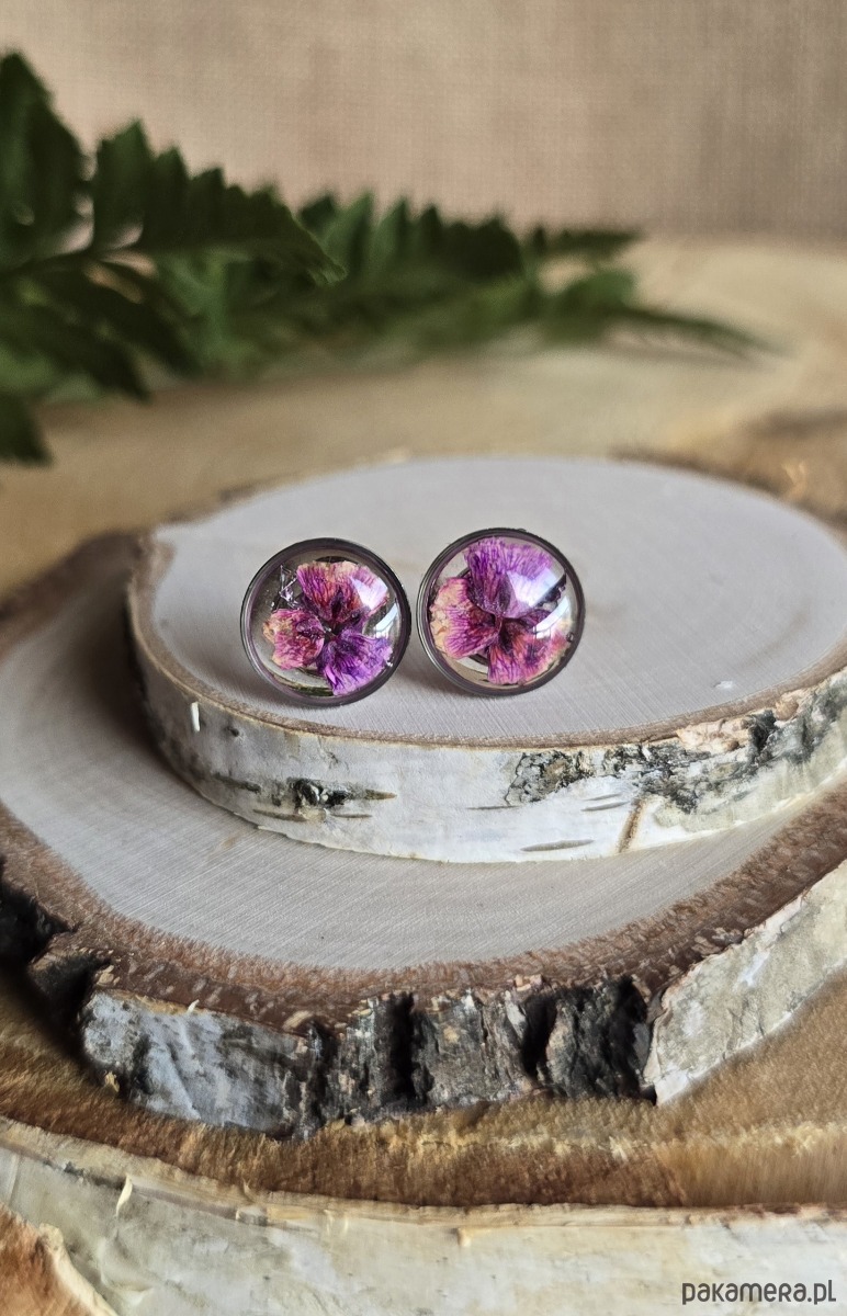 Oferuję Państwu unikalną biżuterię. Kolczyki są wykonane z suszonych kwiatów i żywicy epoksydowej. Biżuteria jest wspaniałym i oryginalnym prezentem na lata.