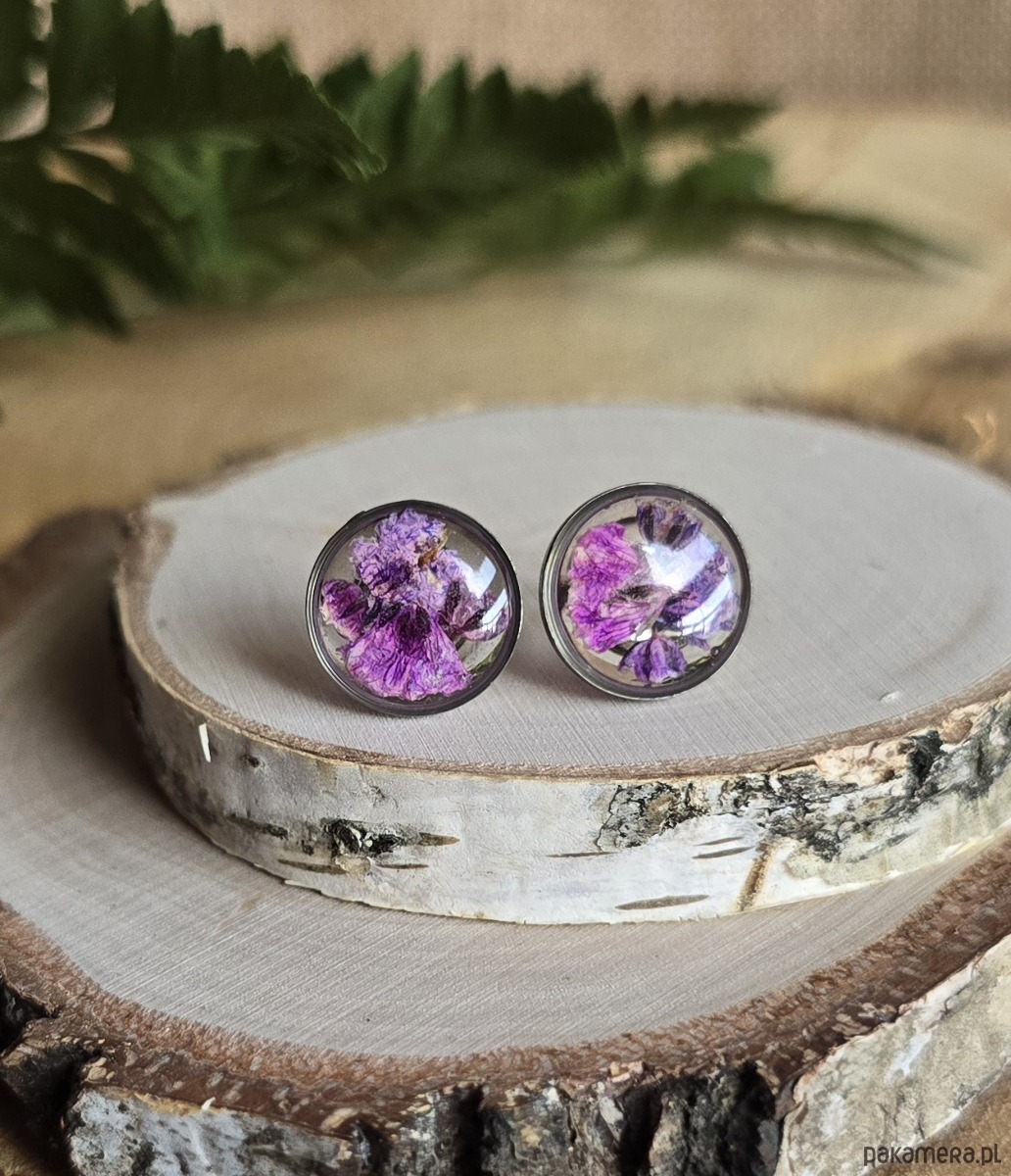 Oferuję Państwu unikalną biżuterię. Kolczyki są wykonane z suszonych kwiatów i żywicy epoksydowej. Biżuteria jest wspaniałym i oryginalnym prezentem na lata.