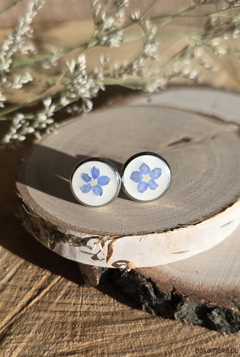 Wieczne kwiaty wkręty z kwiatami kolczyki srebrne niezapominajki