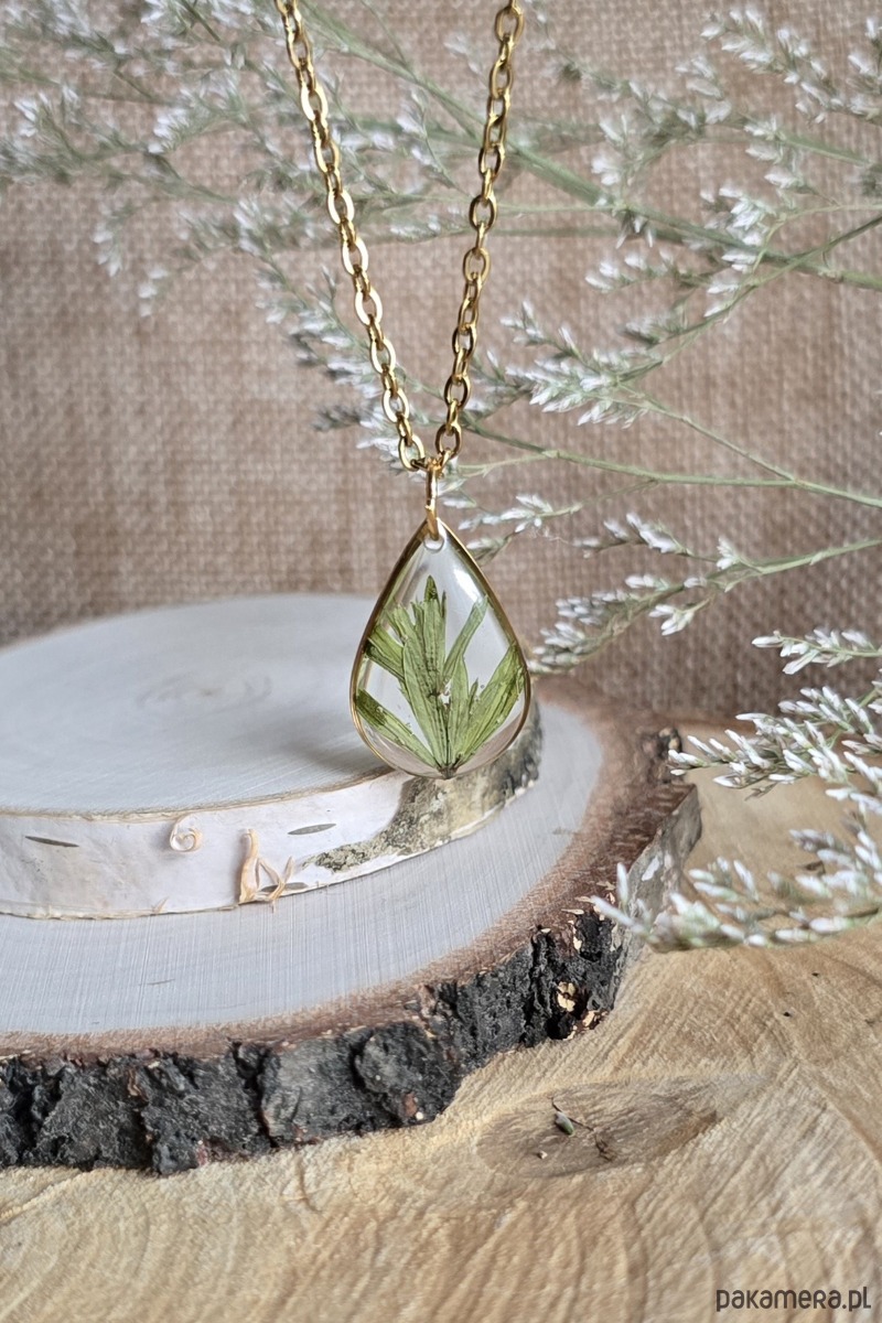 Oferuję Państwu unikalną biżuterię. Zawieszka jest wykonana z suszonych kwiatów i żywicy epoksydowej. Biżuteria jest wspaniałym i oryginalnym prezentem na lata.