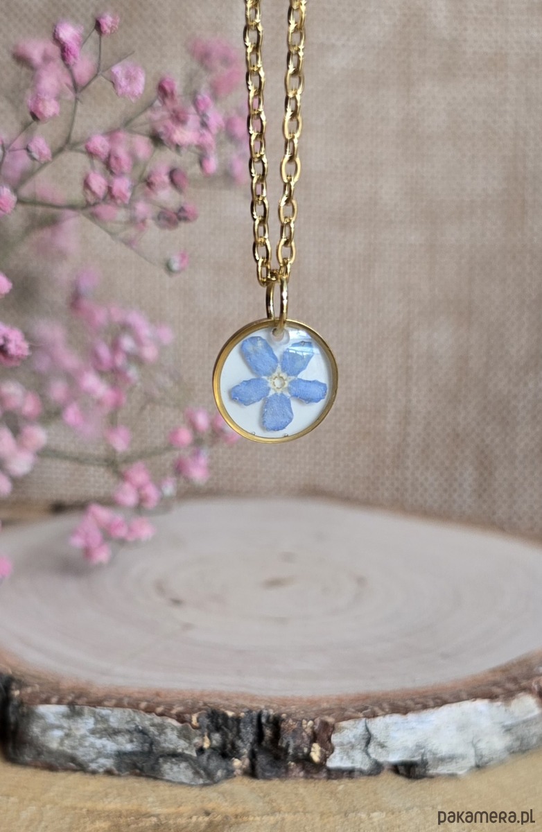 Wieczny kwiat niezapominajka zawieszka z niezapominajką