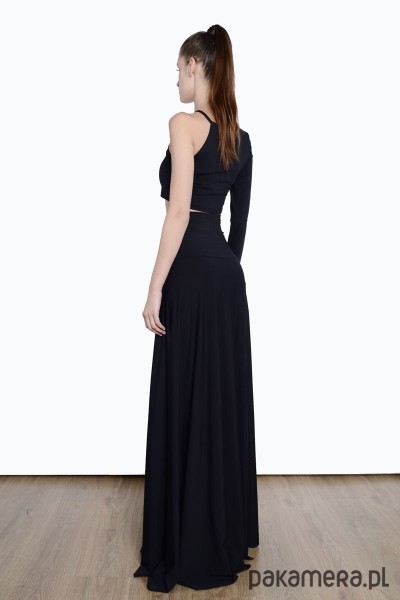 Wieczorowa spódnica maxi z rozporkiem. podwyższona talia długi rozporek odsłaniający jedną nogę wszyte figi długość tyłu mierzona od pasa do ziemi: ok.115cm przód nieco podcięty dla wygody poruszania się kolor: czarny najwyższej klasy jersey:poliamid 90% elastan 10% modelka mierzy 176cm wzrostu i ma na sobie rozmiar 34 i długość 125cm (możliwa na zamówienie)
