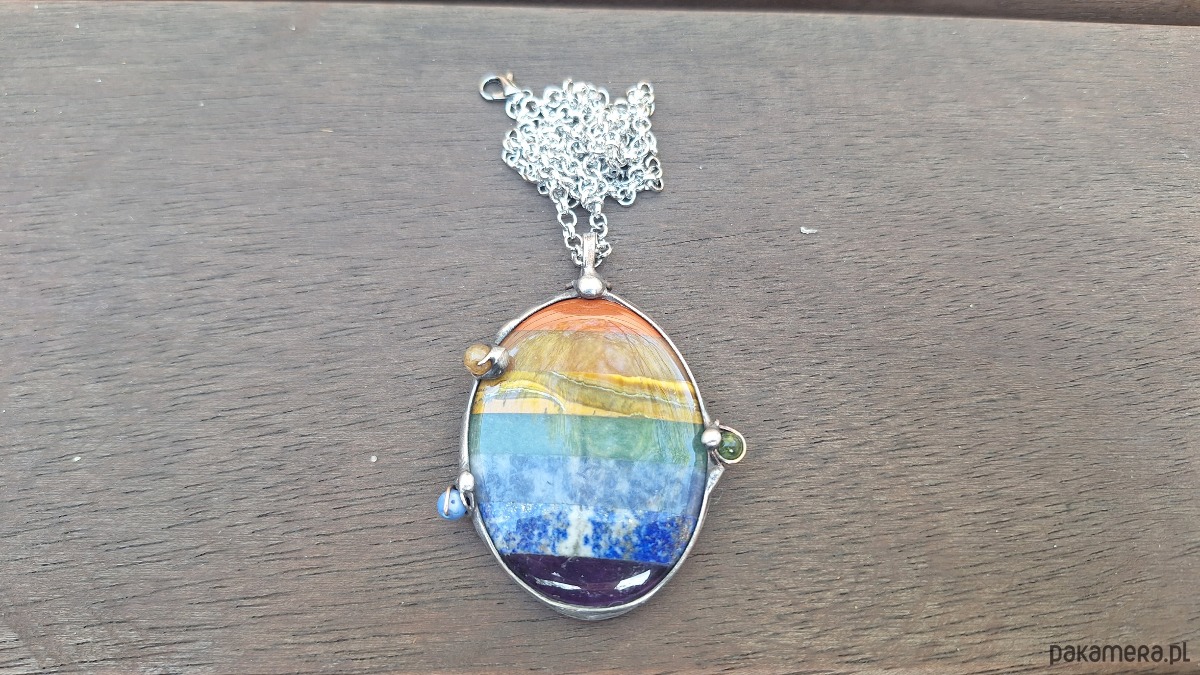 Kamienie: jaspis, kwarc, tygrysie oko, awenturyn, sodalit, lapis lazuli i ametyst.