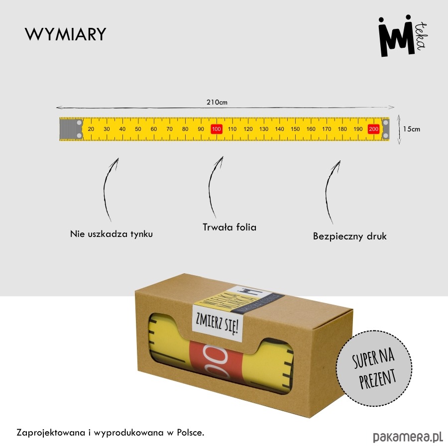 Miarka wykonana jest z trwałej folii samoprzylepnej. Drukowana w przyjaznej dzieciom, nietoksycznej technologii lateksowej. Wielką Miarkę zaprojektowaliśmy i produkujemy Polsce.
