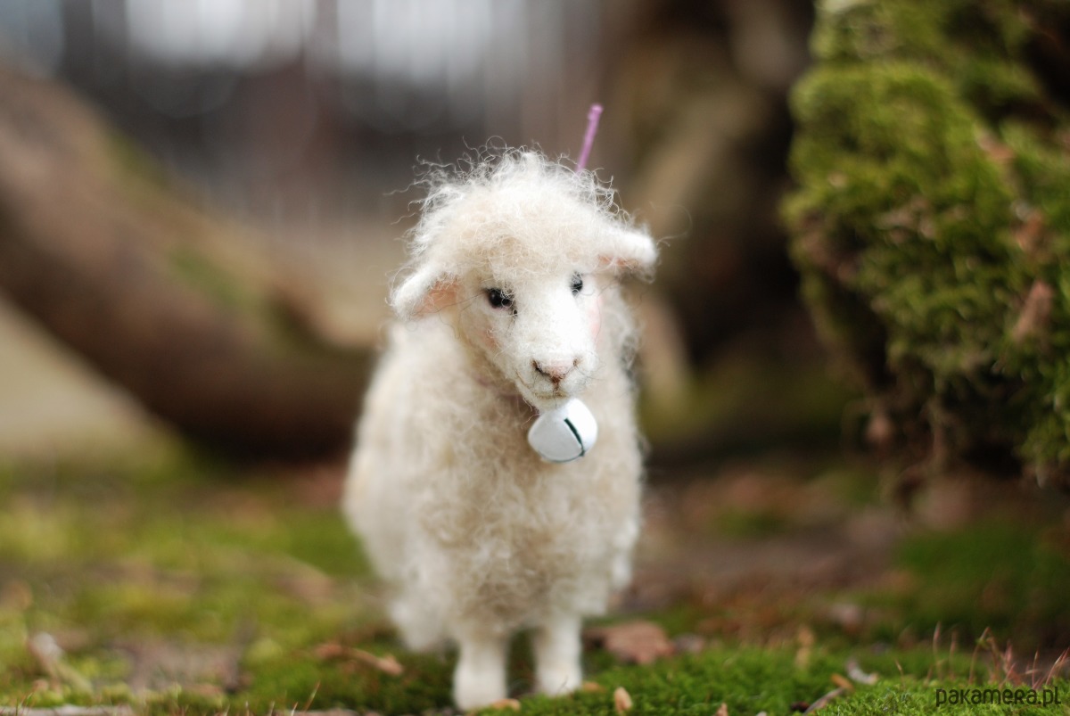 Duża owieczka, wykonany metodą filcowania na sucho z wełny merynos.