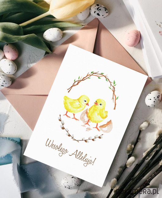 Otwierana, malowana akwarelą kartka wielkanocna w formacie A6 (10,5 x 14,8 cm),