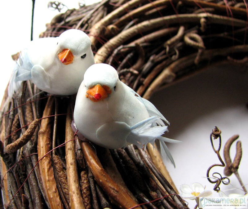 Świąteczny wianuszek na drzwi wykonany na słomianej bazie,dekorowany brzozowymi gałązkami oraz pędami winorośli,utrzymany w błękitno-białej kolorystyce.Średnica zewnętrzna ok.28cm.JEDYNY EGZEMPLARZ !!! SERDECZNIE ZAPRASZAMY DO ZAKUPU :)