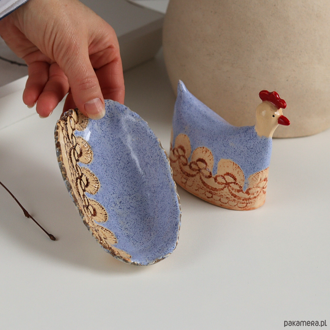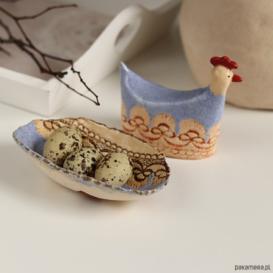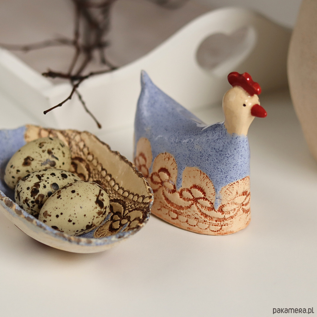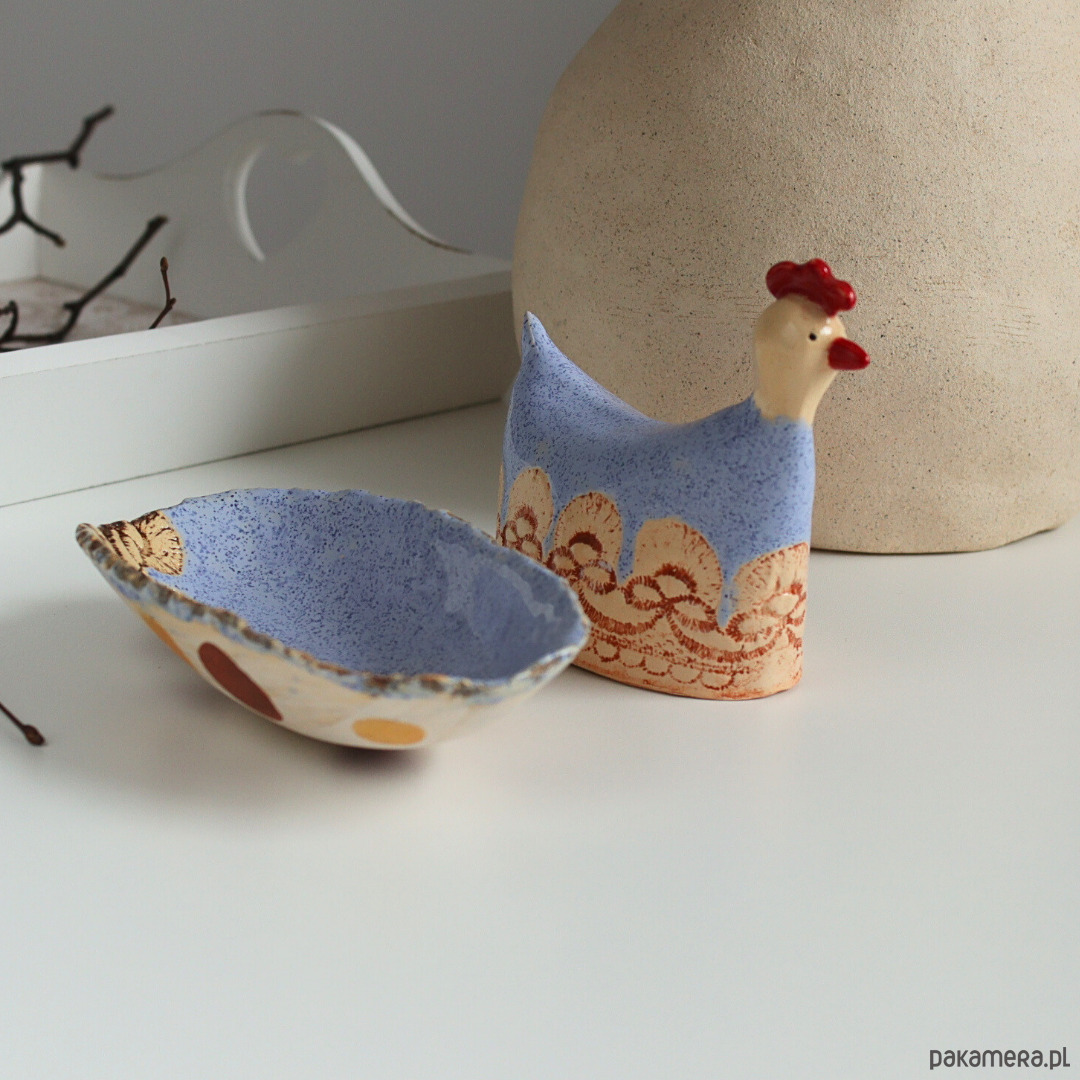 Wielkanocna kurka i miseczka ceramika zestaw
