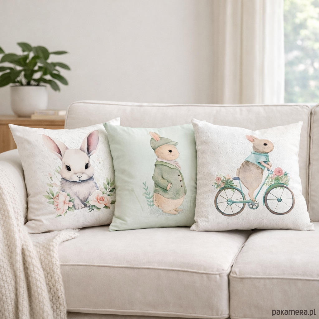 Wielkanocna poszewka dekoracyjna Zając w kaszkiecie