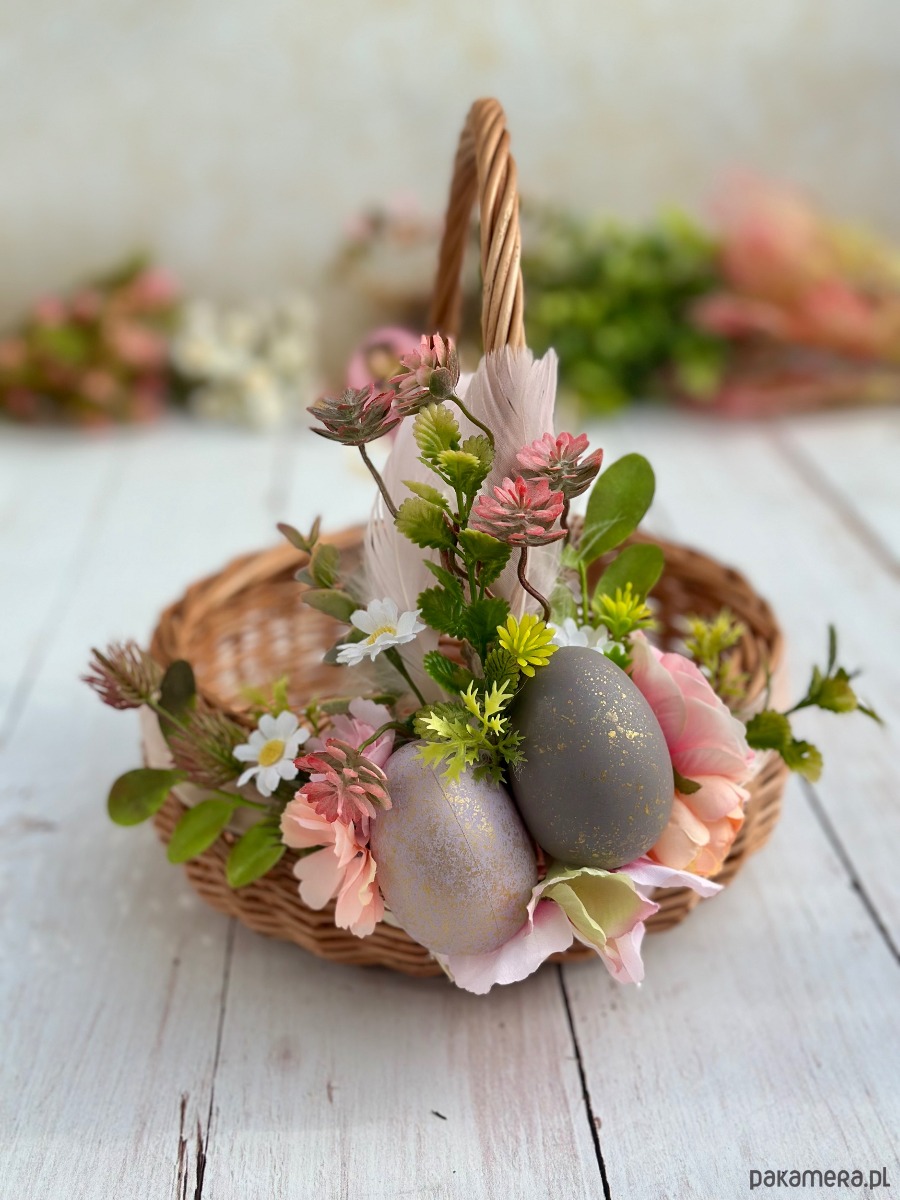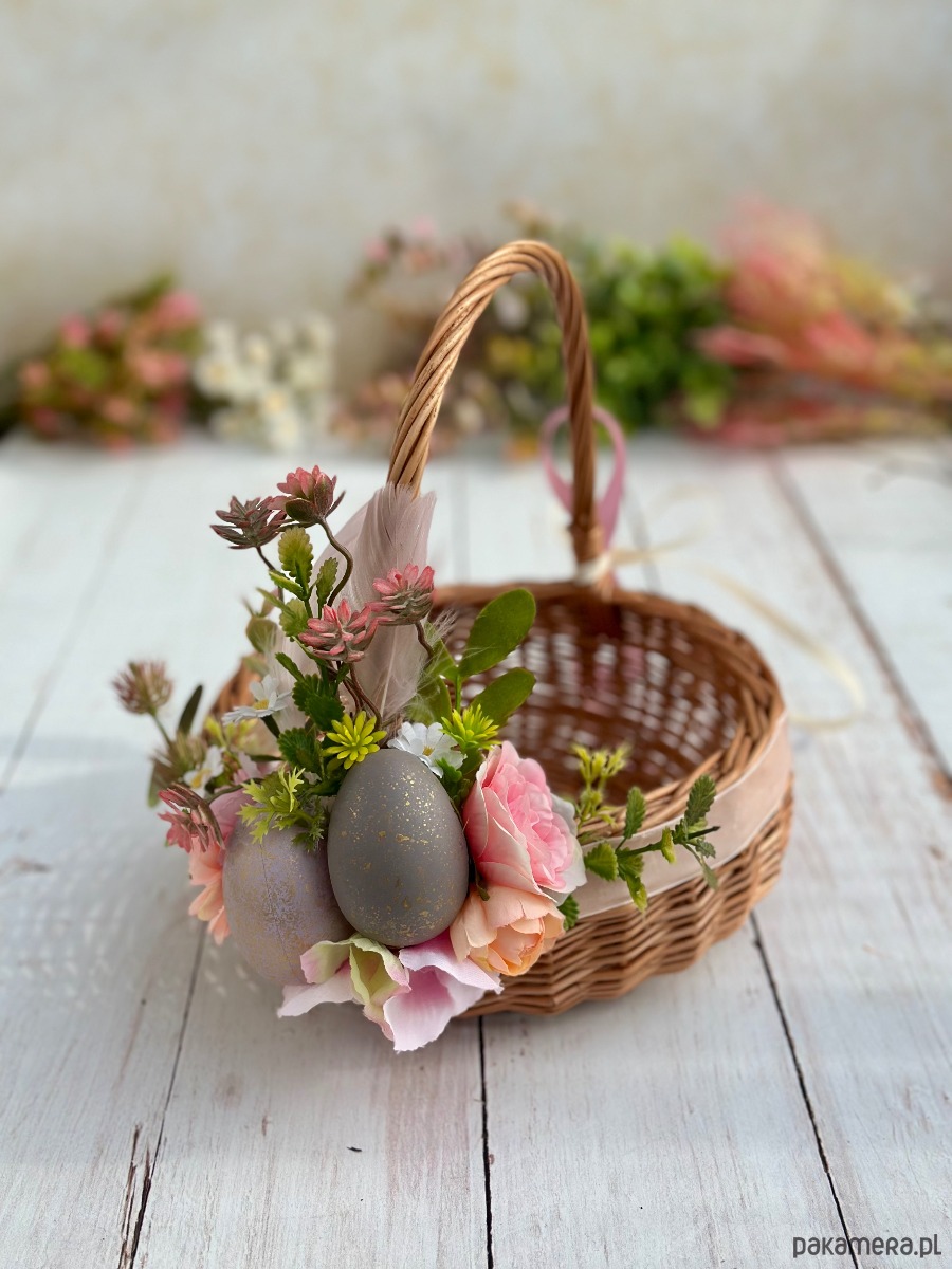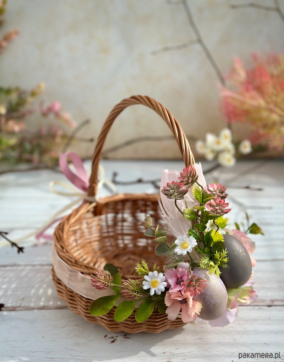 Wielkanocny koszyczek na święconkę, koszyczek z dekoracją