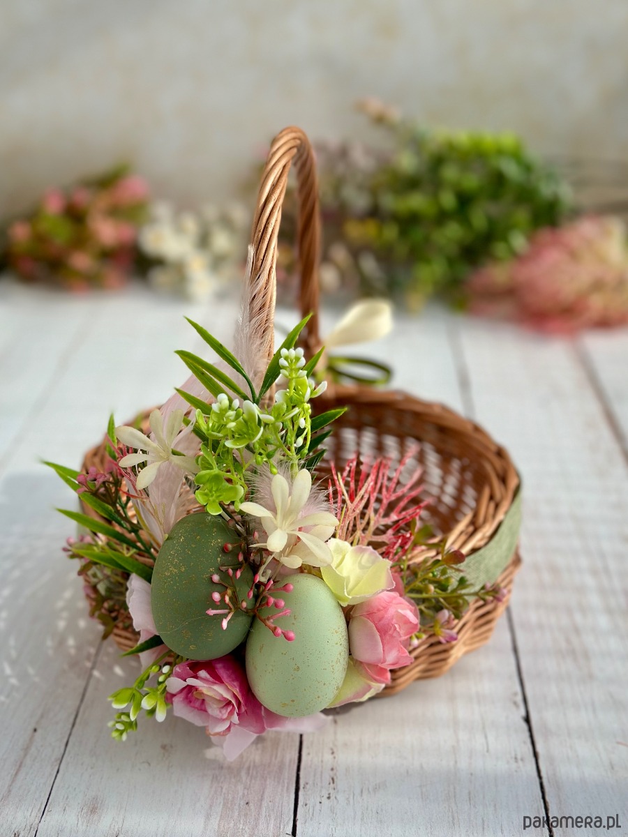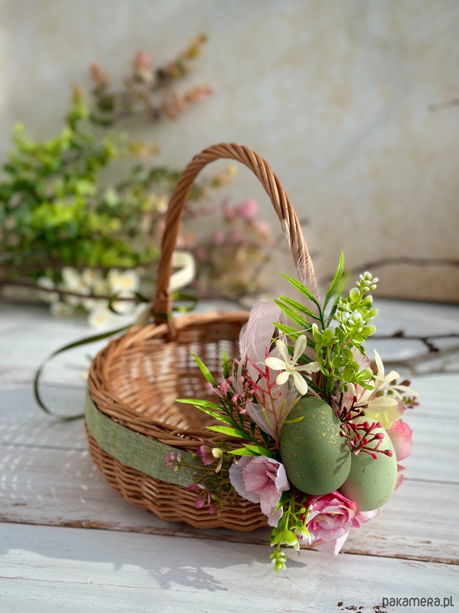 Wielkanocny koszyczek na święconkę, koszyczek z dekoracją