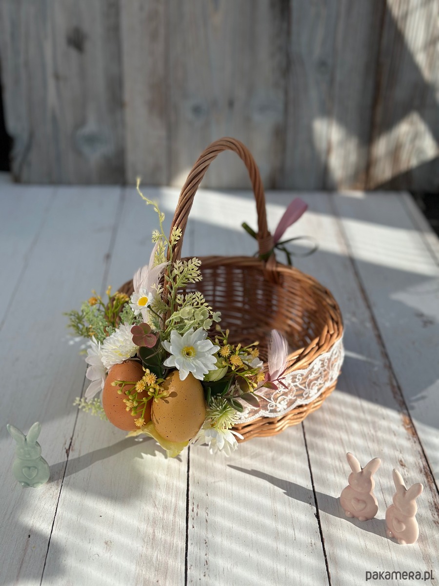 Wielkanocny koszyczek na święconkę, koszyczek z dekoracją