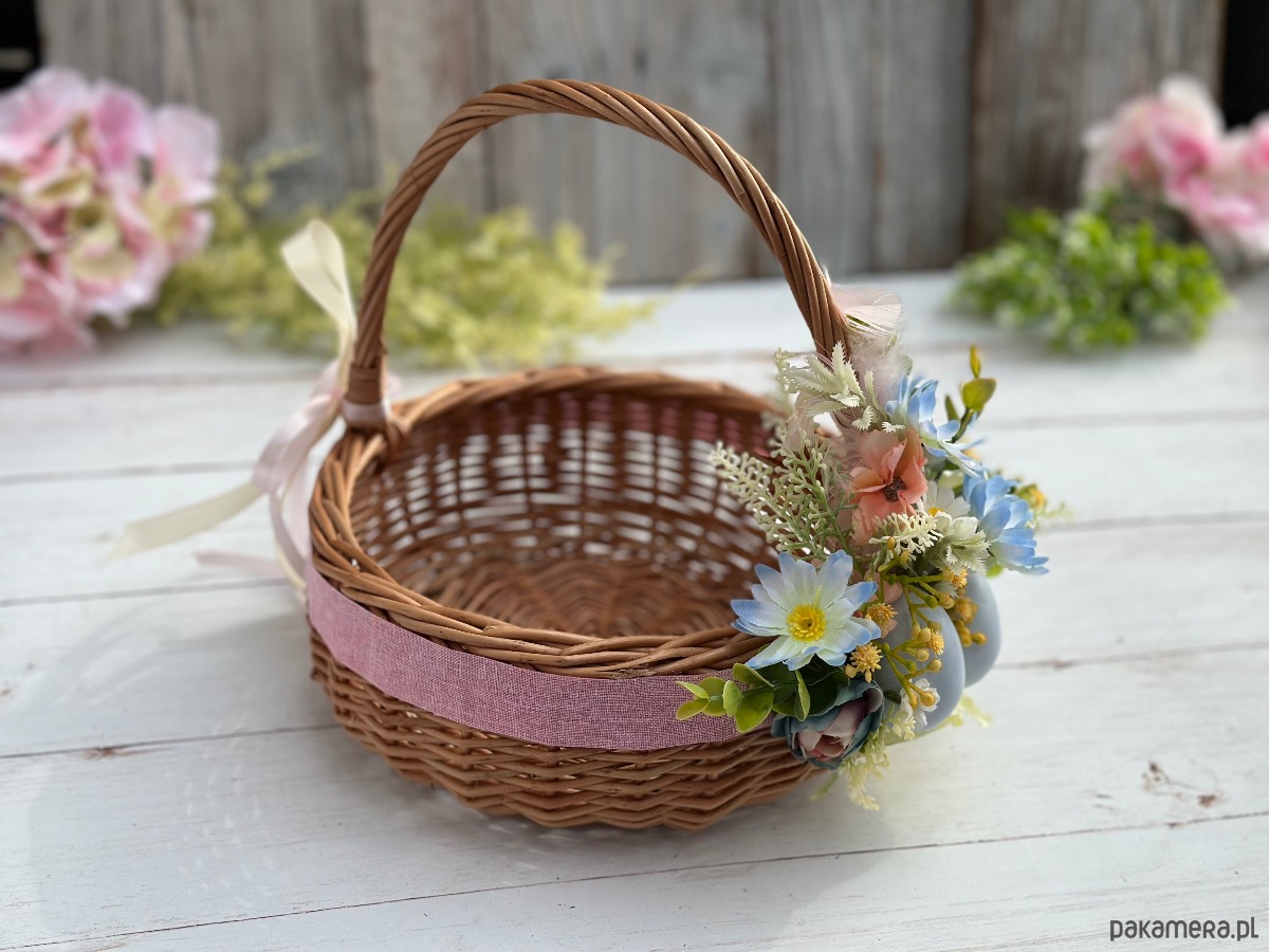 Wielkanocny koszyczek na święconkę, koszyczek z dekoracją