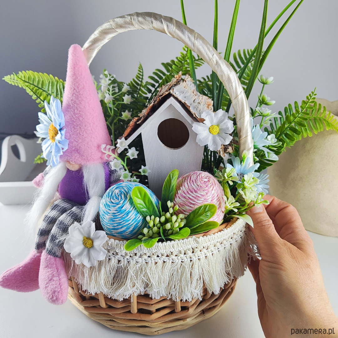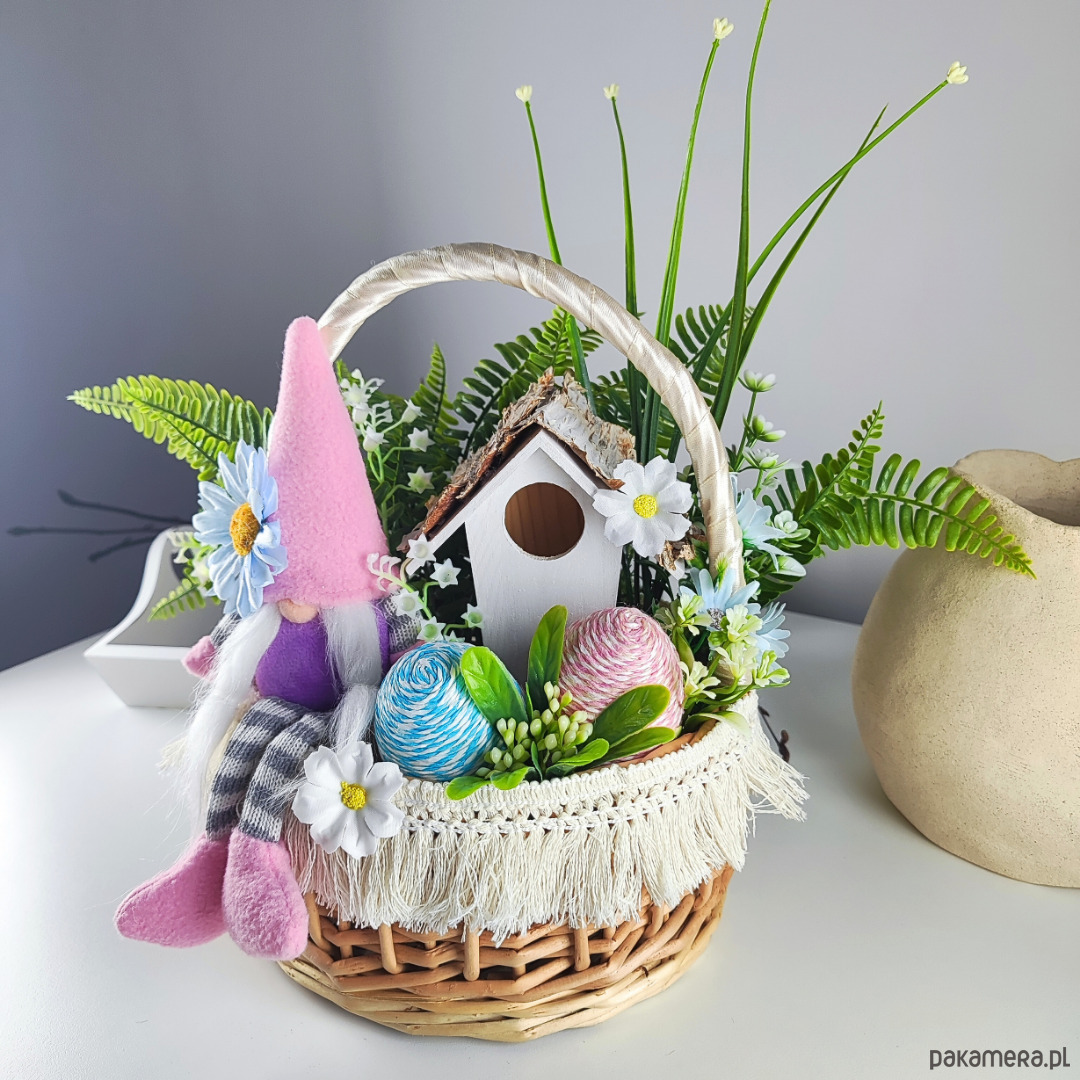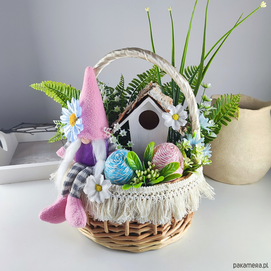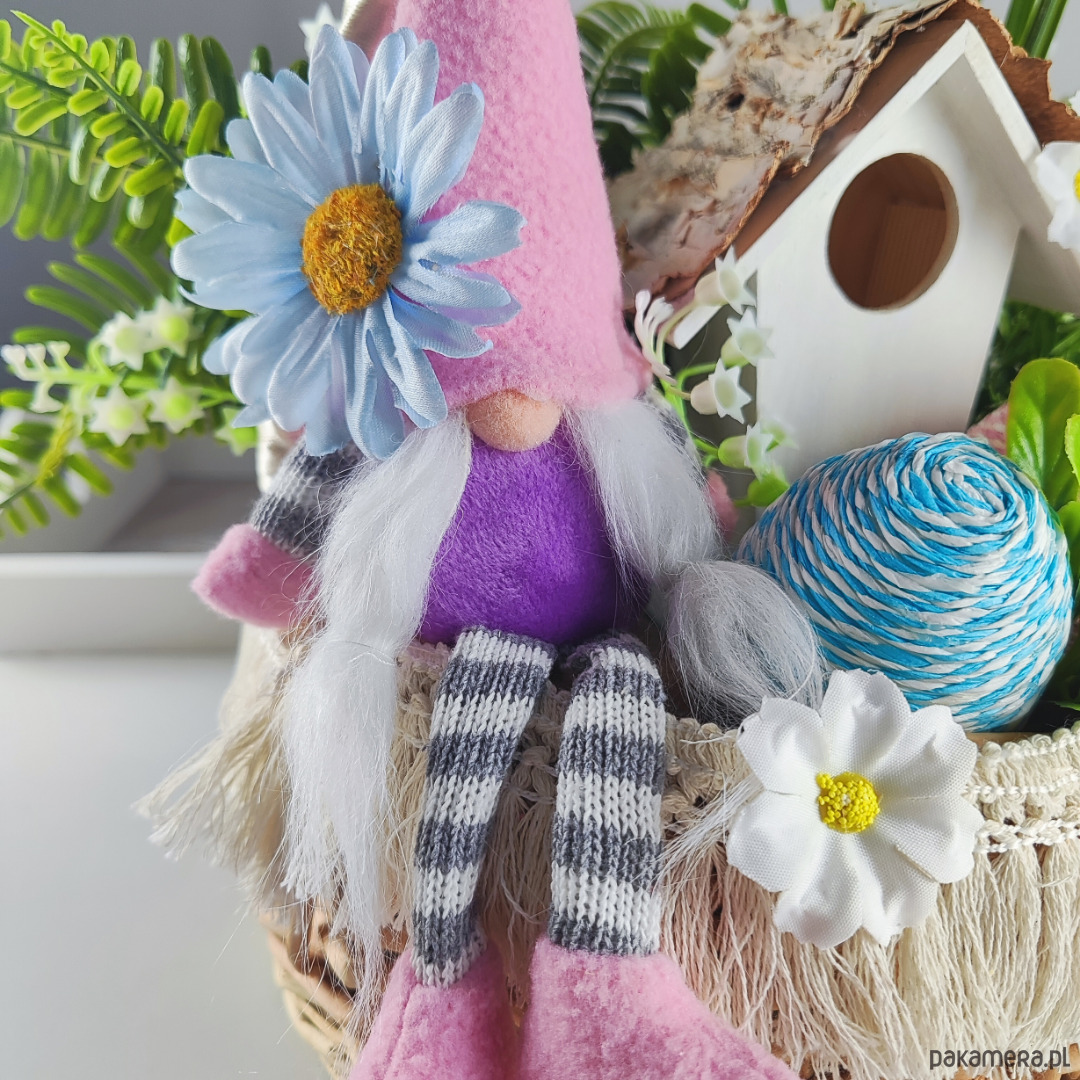 Wielkanocny stroik gnom w koszyku