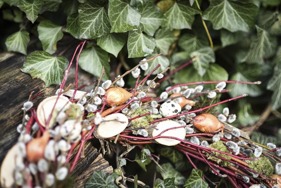 wianek zrobiłam z derenia czerwonego, bazi , jaj przepiórczych , cebuli dymki .