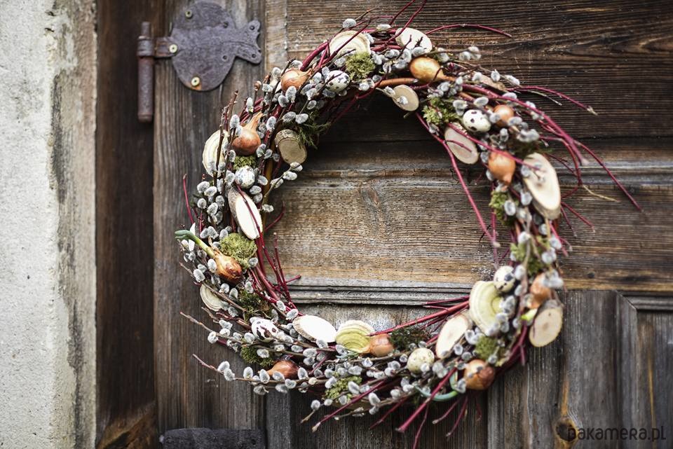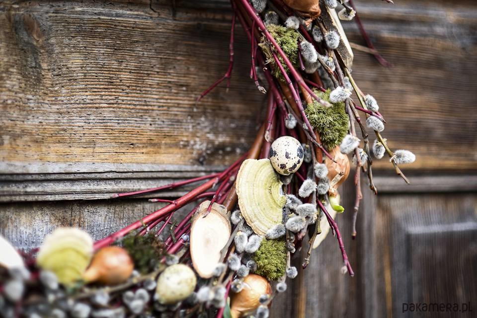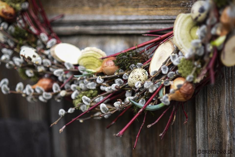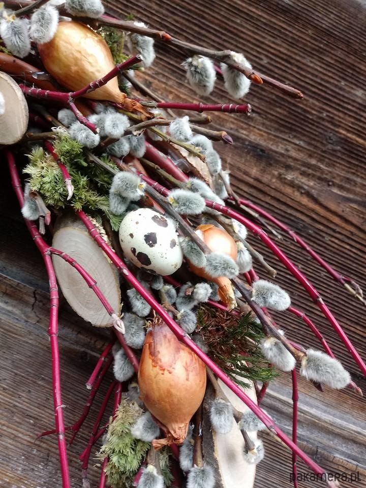 wianek zrobiłam z derenia czerwonego, bazi , jaj przepiórczych , cebuli dymki .