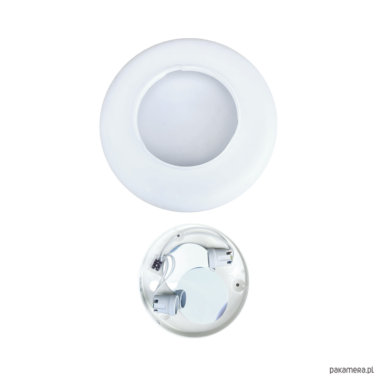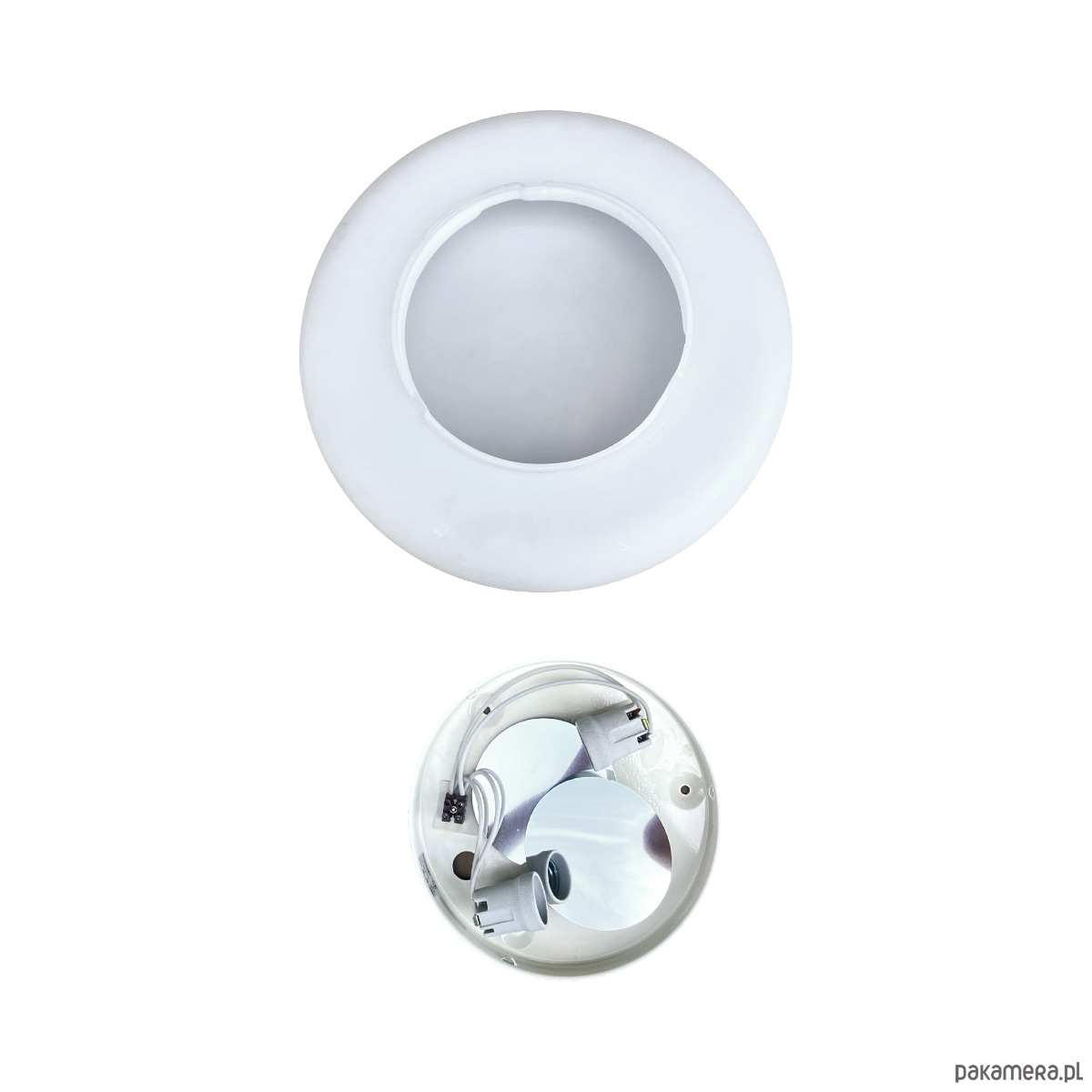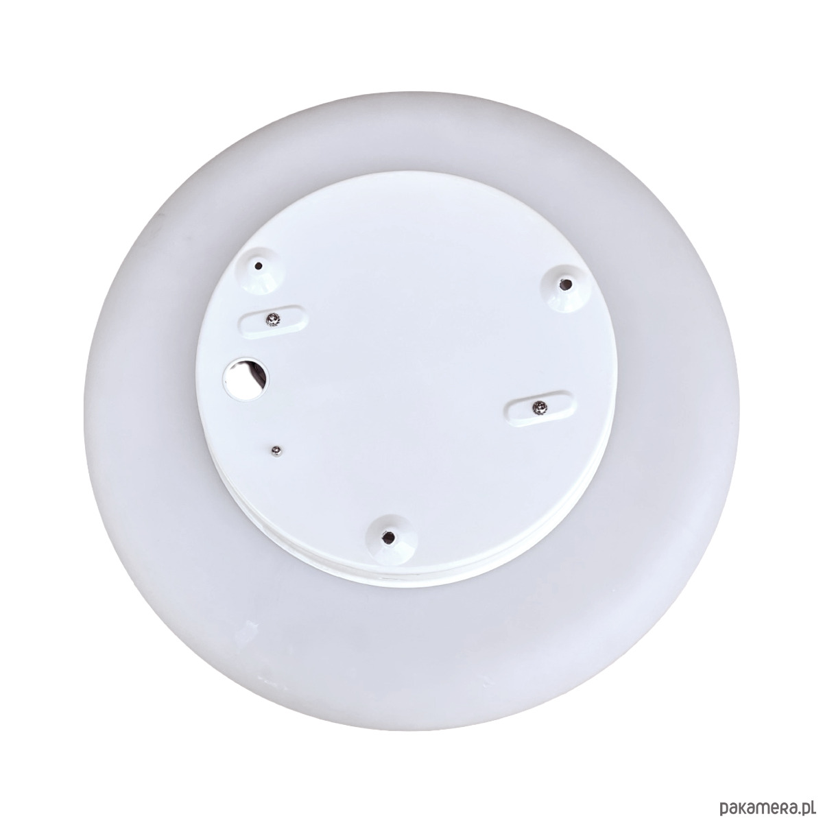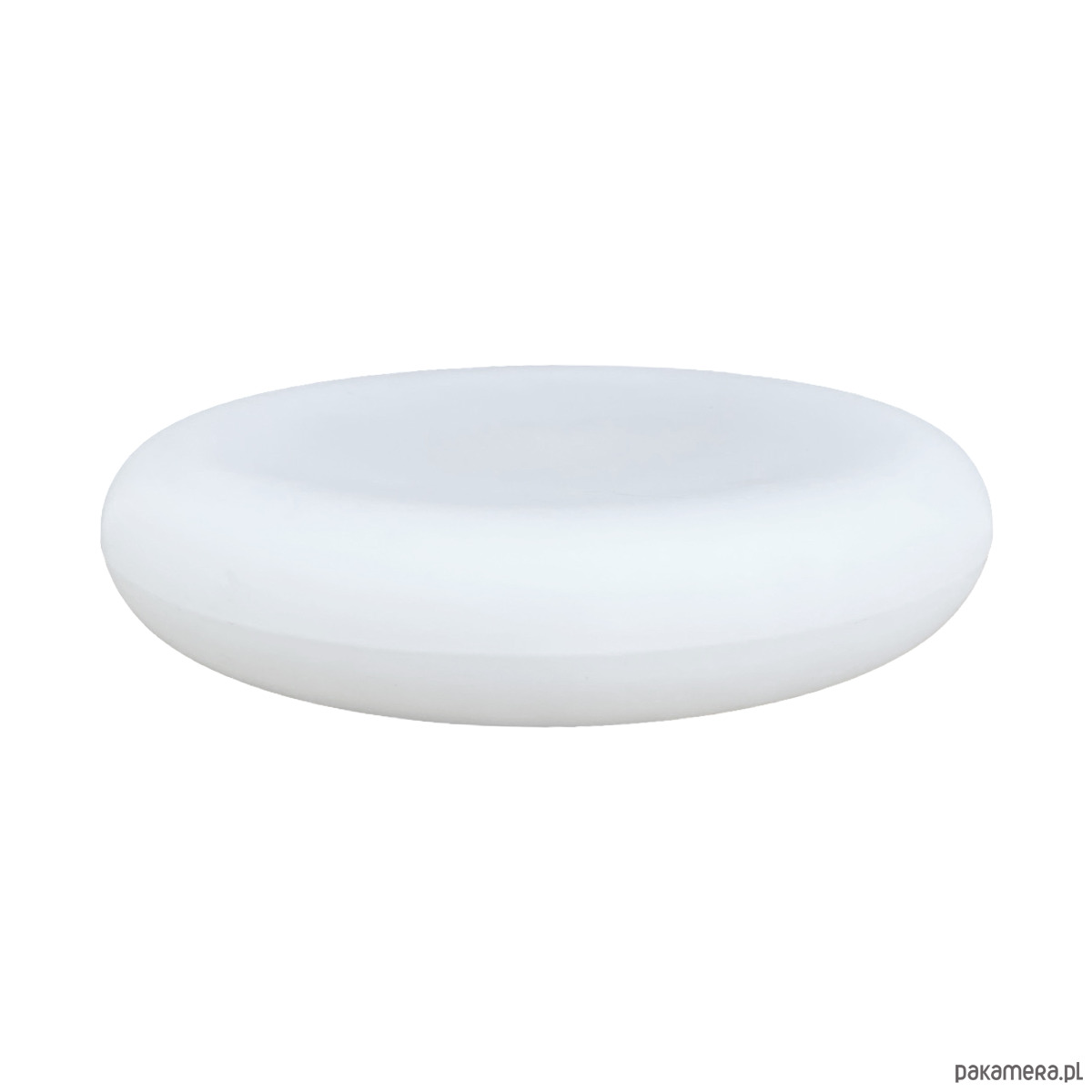 Wielki, biały, plafon ze szkła prasowego Massive wyprodukowany w latach 80. Lampa w kształcie spłaszczonego walca, tak zwana piguła. Plafon w stanie oryginalnym bardzo dobrym, z niewielkimi śladami użytkowania. Lampa działa na dwie żarówki E27 do 60W.