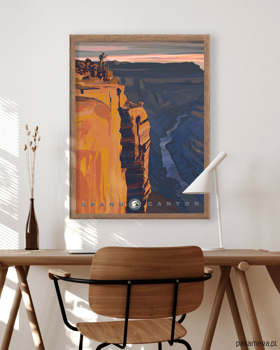 Plakat przedstawia jedną z najbardziej zachwycających skalnych formacji. Pomarańczowo-czerwone warstwy kolorystyczne skał, monumentalne rozmiary i spokojna rzeka poniżej - wszystko to sprawia, że Wielki Kanion rozbudza wyobraźnię każdego podróżnika. Dzięki intensywnym barwom plakat przykuwa wzrok i stanowić będzie wyrazisty akcent w każdym pomieszczeniu.
