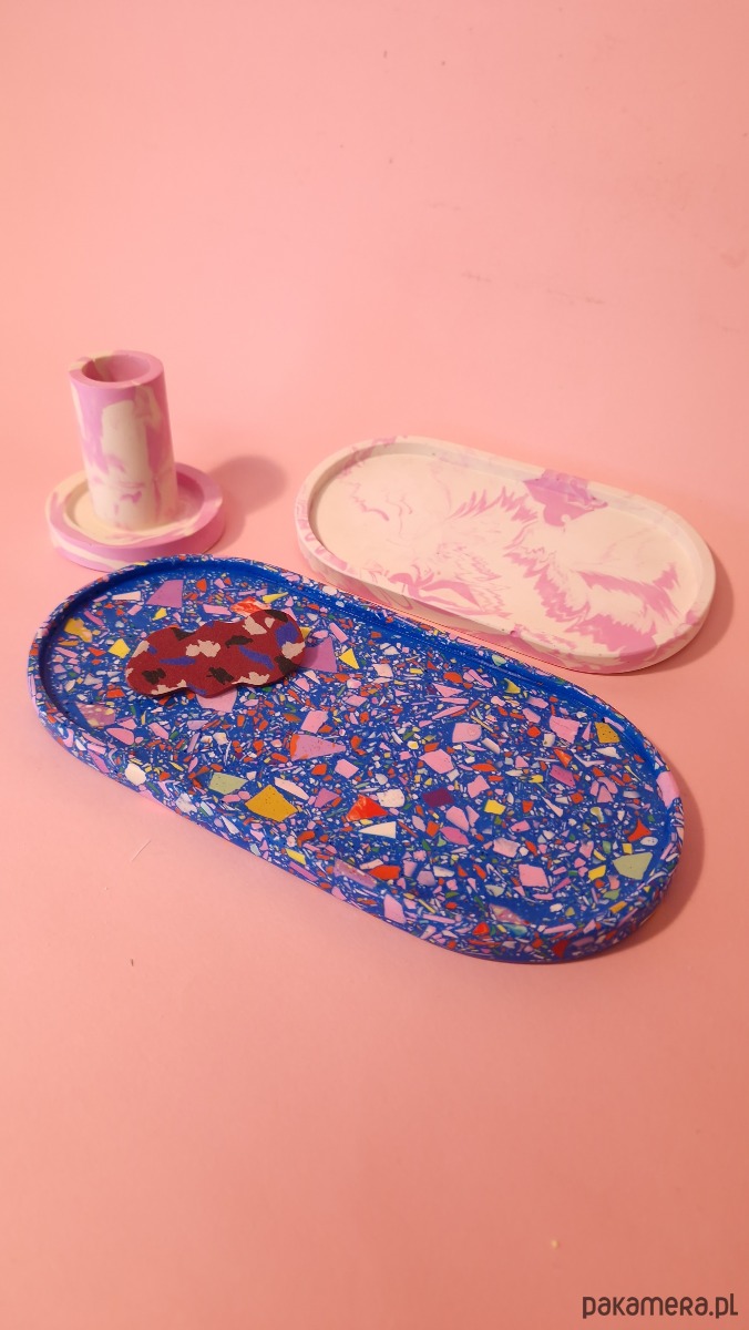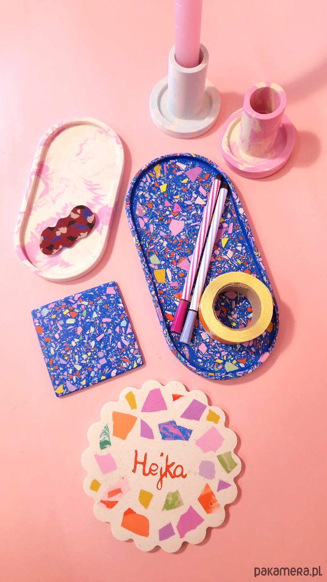 Kolorowy świecznik we wzór marmurka to przepiękny, designerski dodatek do salonu i na stół.