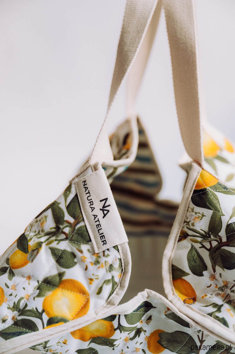 Uchwyty: Trwałe i wygodne uchwyty z mocnej bawełnianej taśmy, zachowujące kształt dla bezpiecznego transportu.