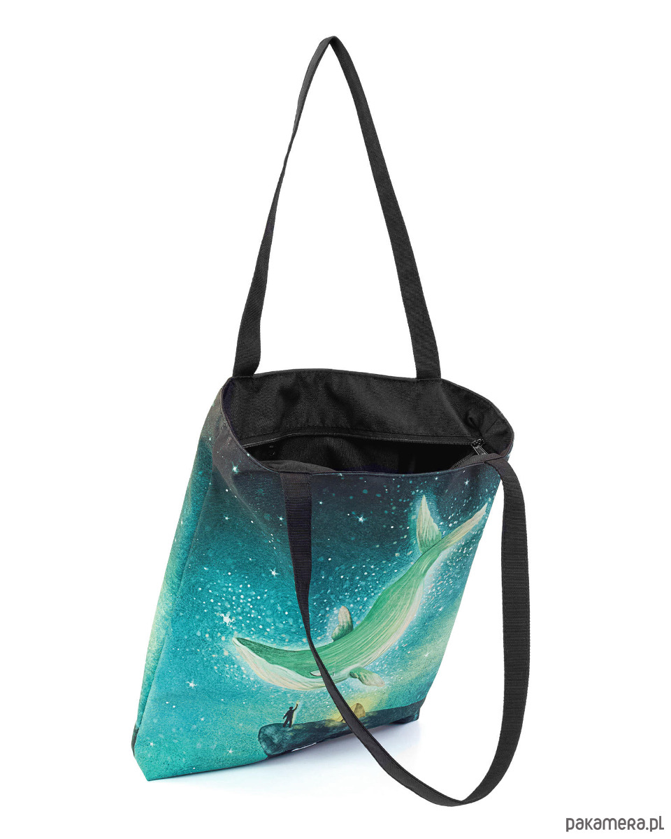 Wewnątrz znajduje się kieszeń zapinana na zamek, rączki wzmocnione paskiem.
