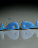 Efektowne kolczyki w formie sztyftów, ręcznie wykonane z delikatnej kamionki, jednostronnie szkliwione mieszanką matowych błękitnych szkliw z efektem plamek, na antyalergicznych sztyftach w kolorze srebrnym.długość elementu ceramicznego ok. 22mm, Polecam