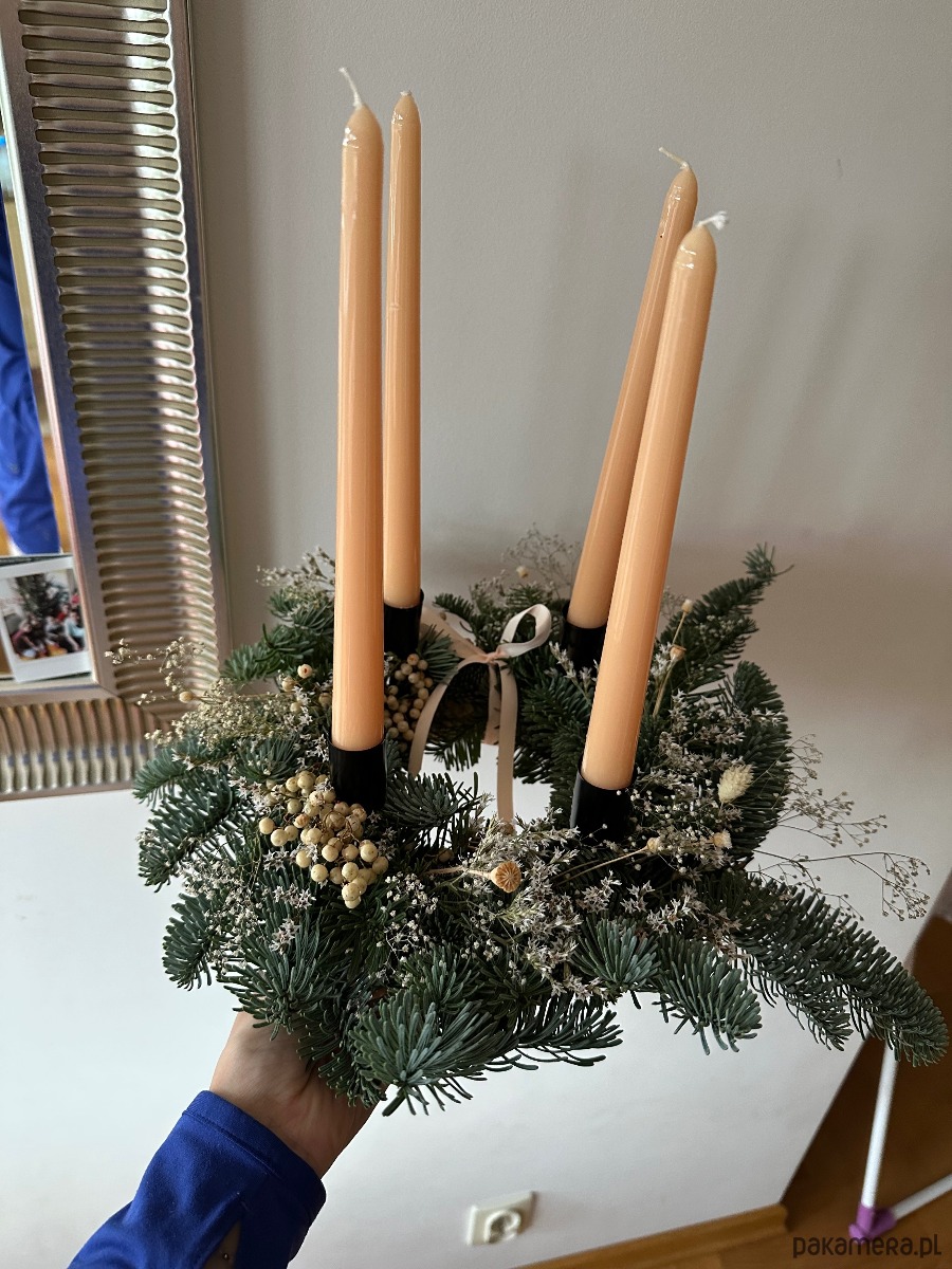 Wieniec, stroik adwentowy bożonarodzeniowy naturalny 100% wykonany z żywej i suszonej roślinności.