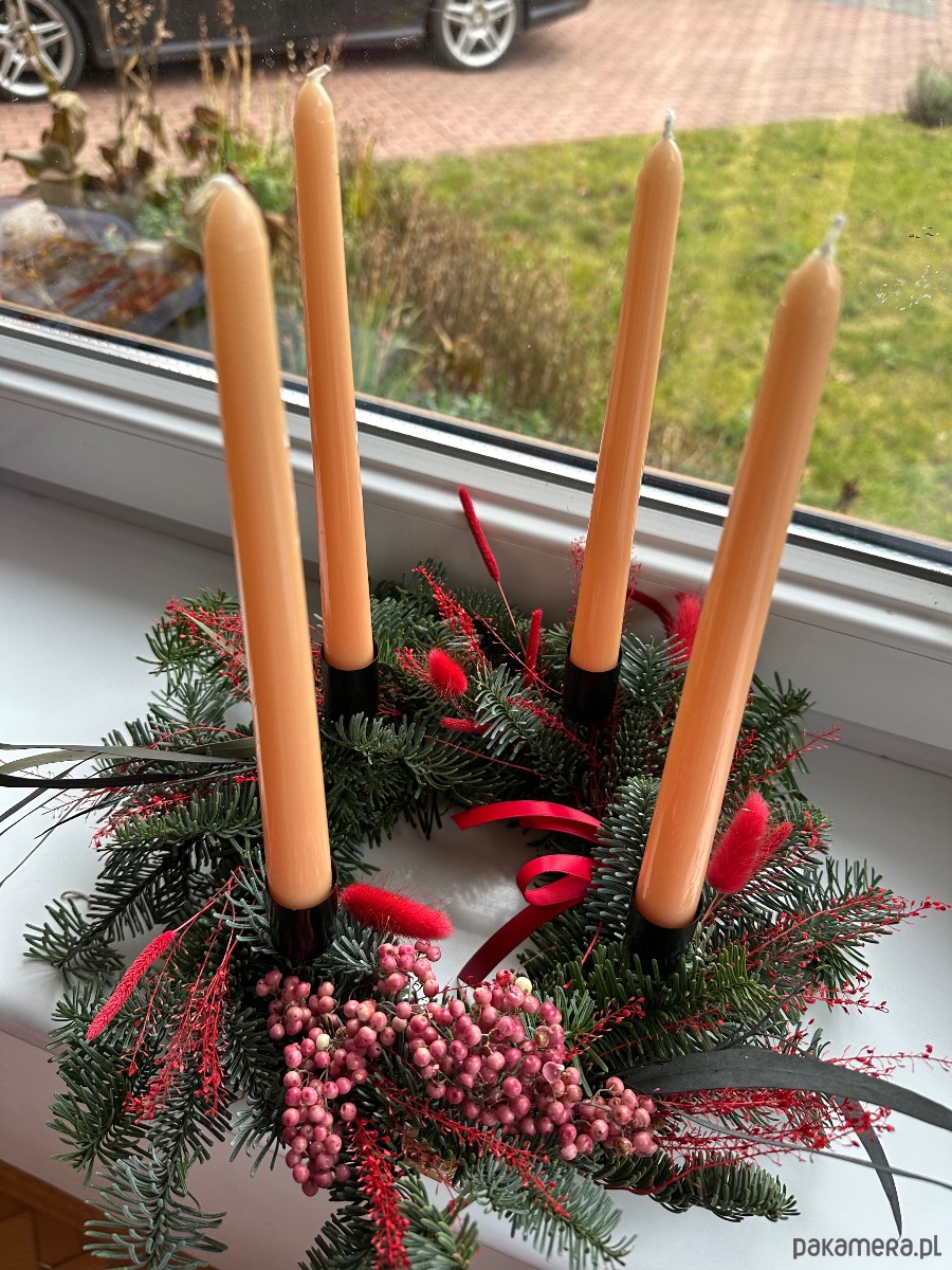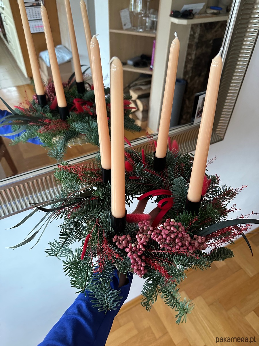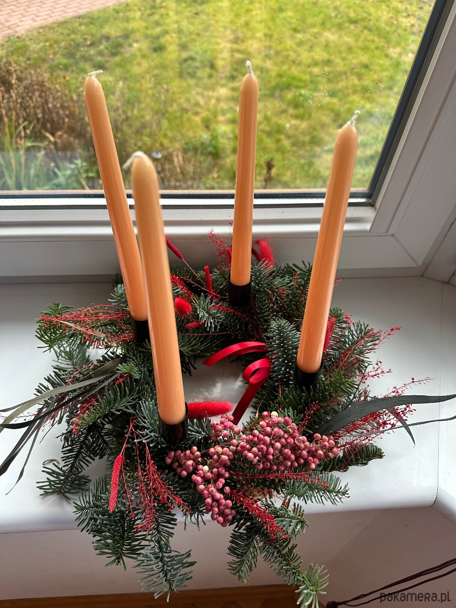 Wieniec, stroik adwentowy bożonarodzeniowy naturalny 100% wykonany z żywej i suszonej roślinności.