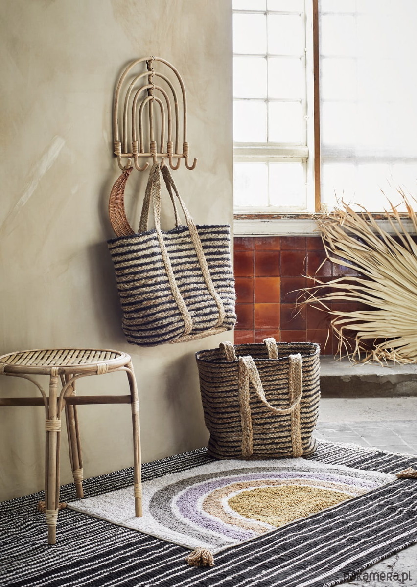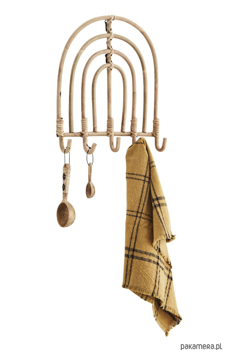 Wieszak bambusowy w modnym kształcie łuku. Idealny jako wieszak do łązienki na ręczniki czy też do kuchni na przybory podręczne.