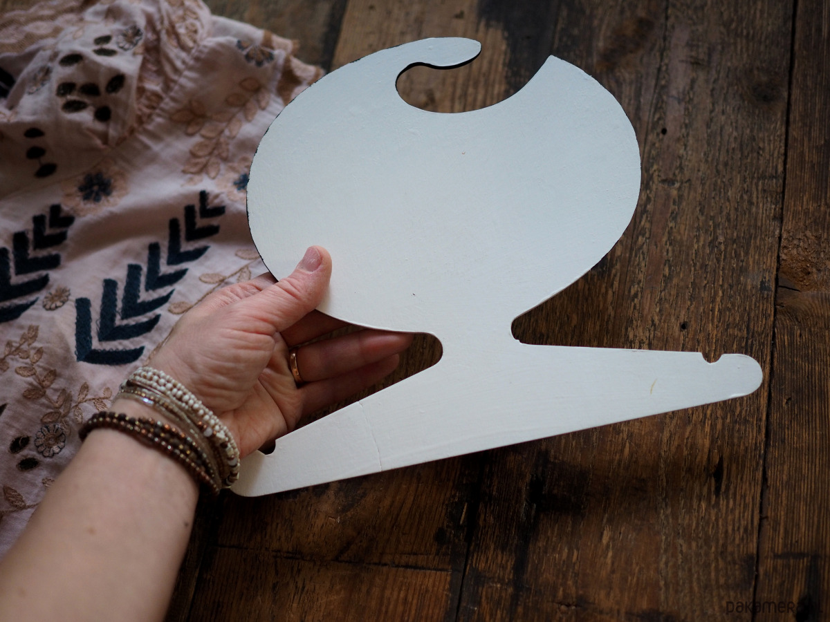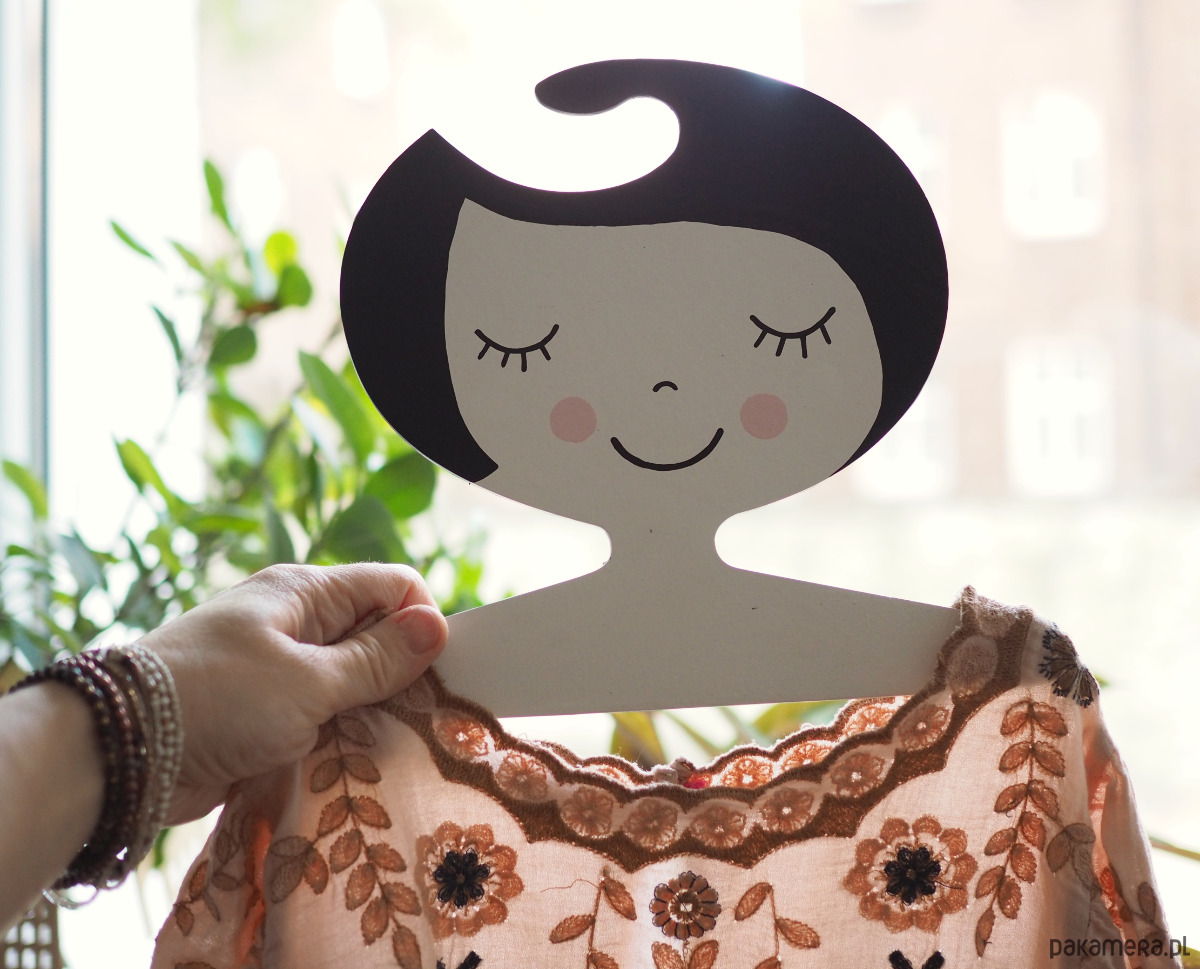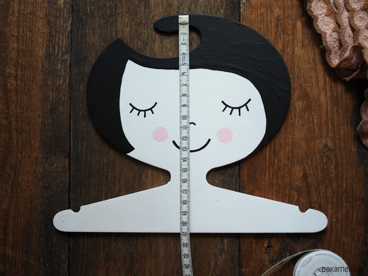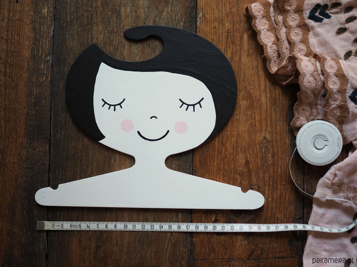 Drewniany, ręcznie malowany, wieszaczek na dziecięce ubranka. Wieszak jest wycięty z drewnianej sklejki i ręcznie malowany przeze mnie wysokiej jakości, wodoodpornymi farbami akrylowymi. Może stanowić uroczy akcent pokoju dziecięcego. Wzór znajduje się z jednej strony, z drugiej pomalowany jest na biało.