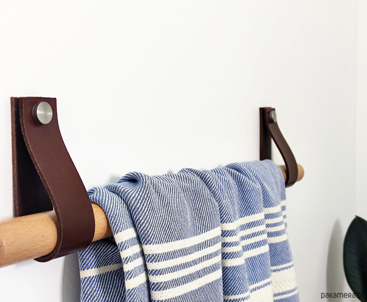 Wieszak łazienkowy uchwyt na ręcznik kolor skóry brąz