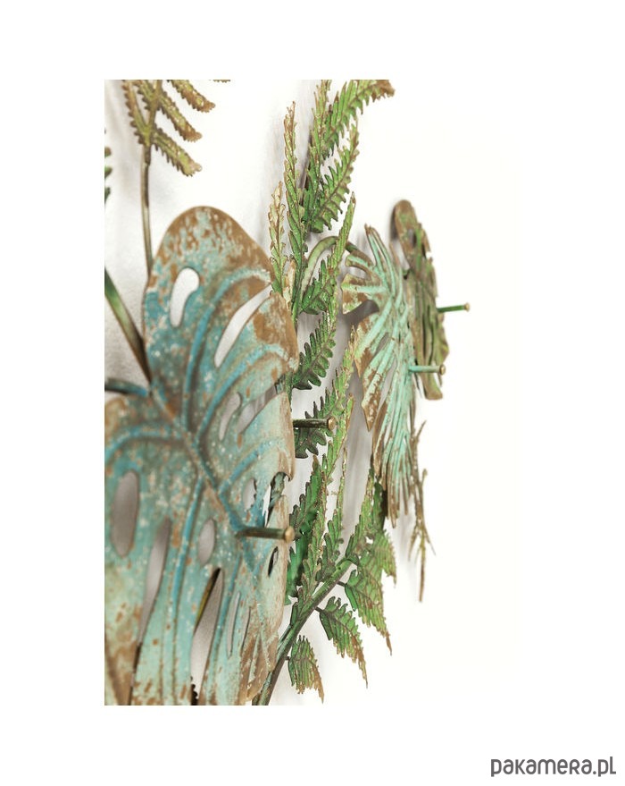 Fantazyjny wieszak w formie liści. Wykonany z metalu malowanego proszkowo. Celowo lekko potarzany. Solidne wieszaki.