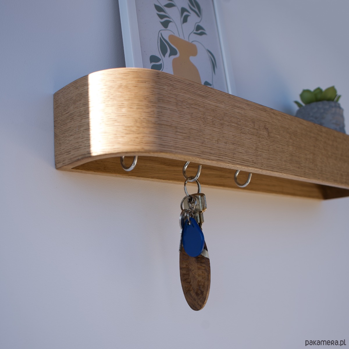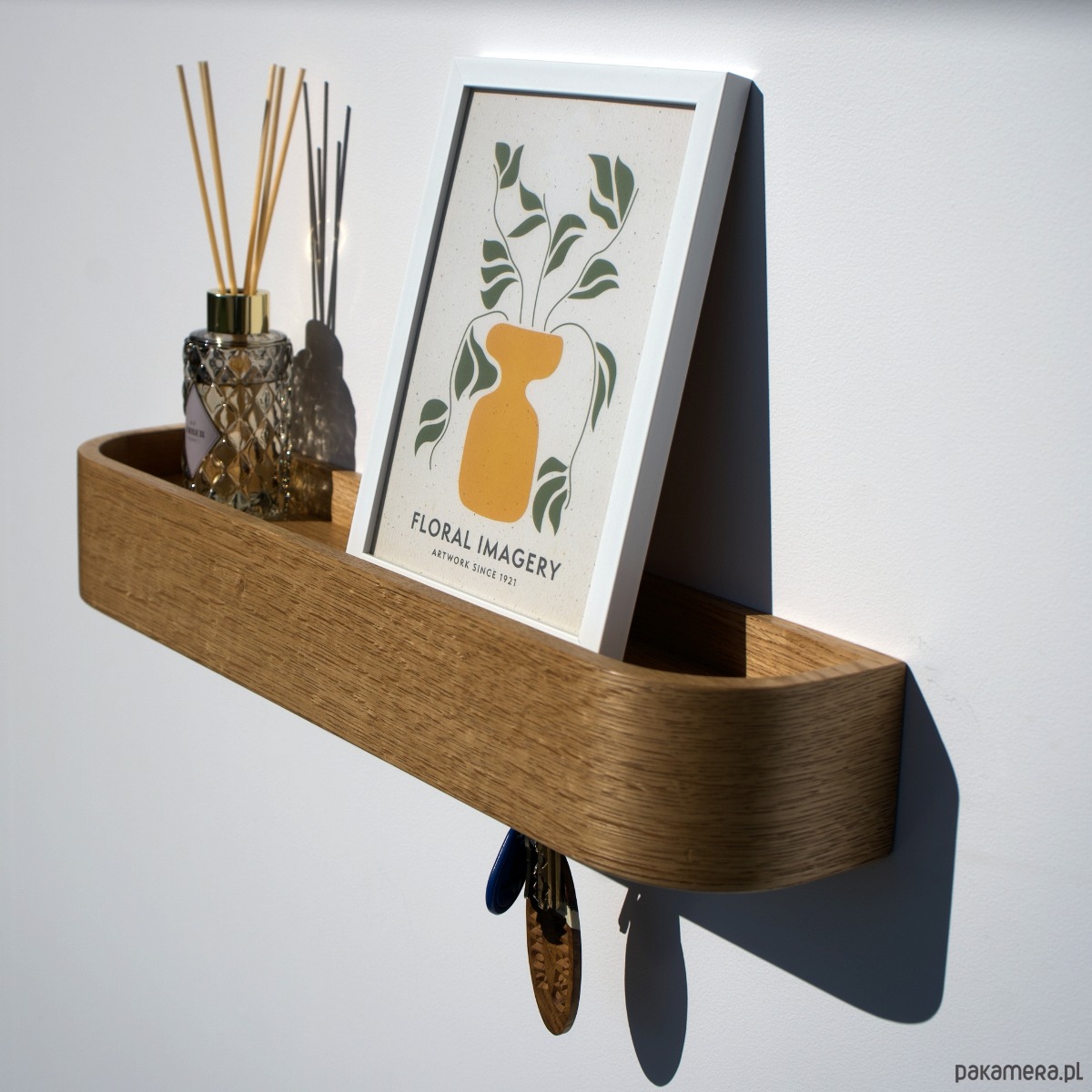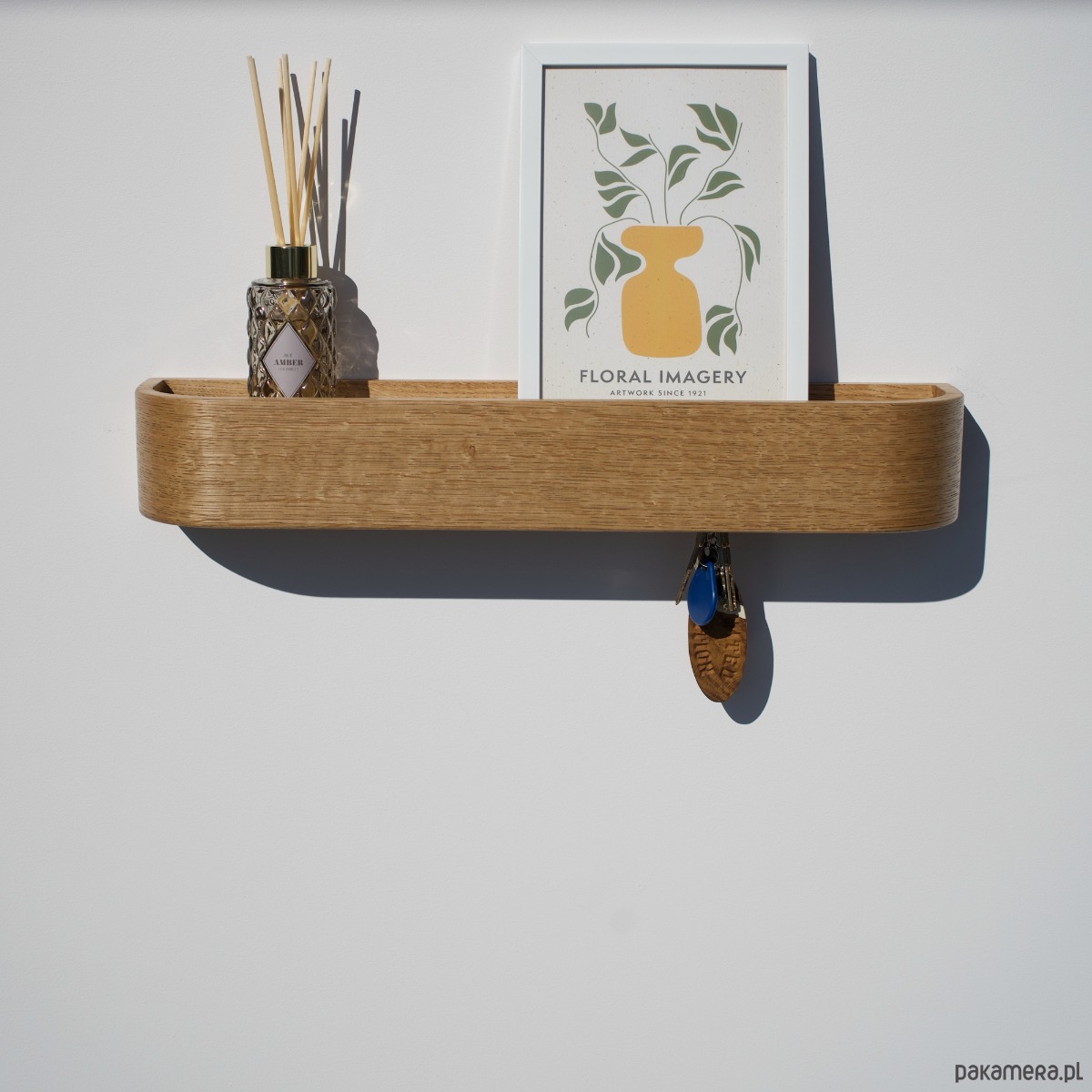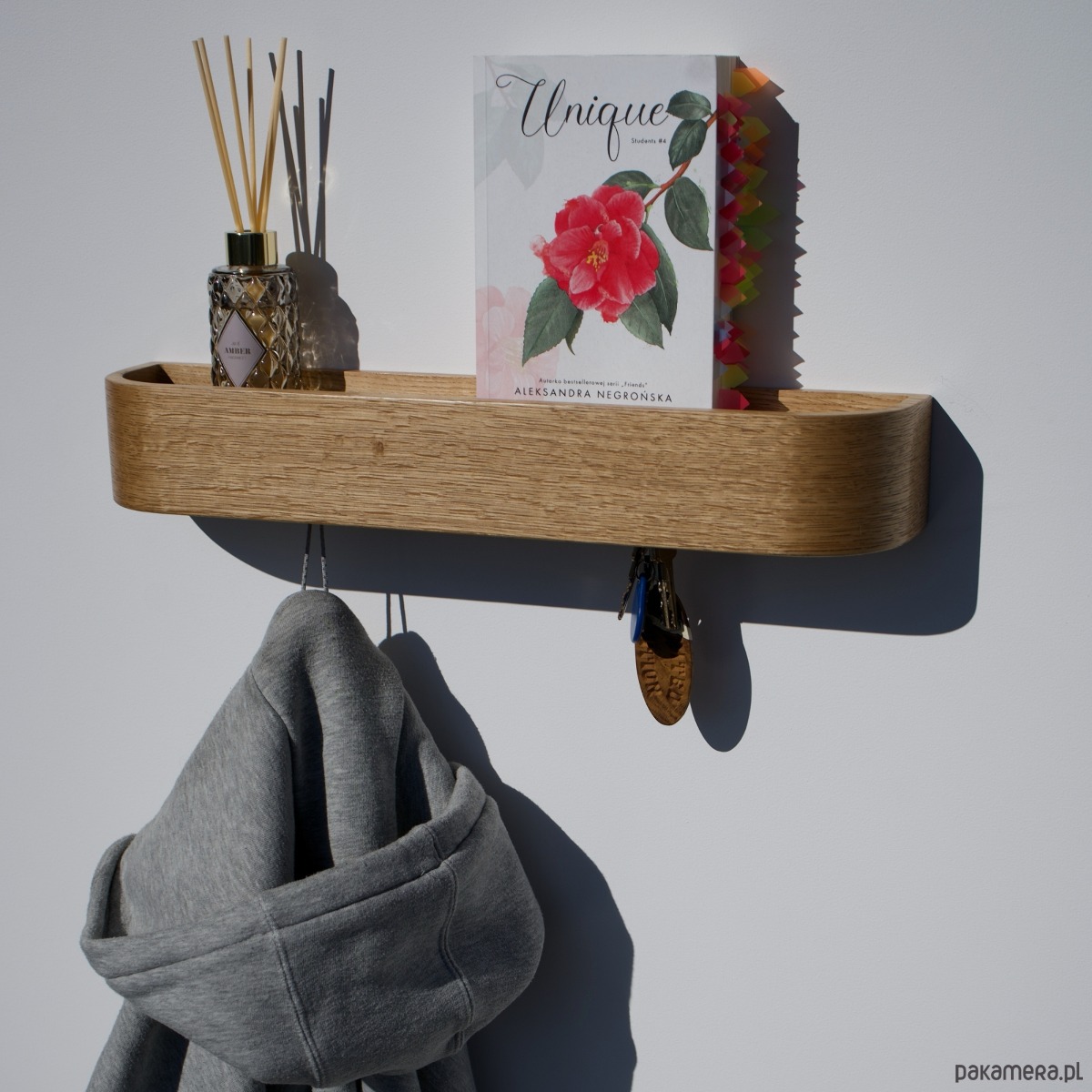 Stylowa i funkcjonalna dębowa półka do przedpokoju, która łączy minimalistyczny design z praktycznymi rozwiązaniami. Jej nowoczesna forma sprawia, że doskonale wpasuje się w każde wnętrze - od skandynawskiego po industrialne.