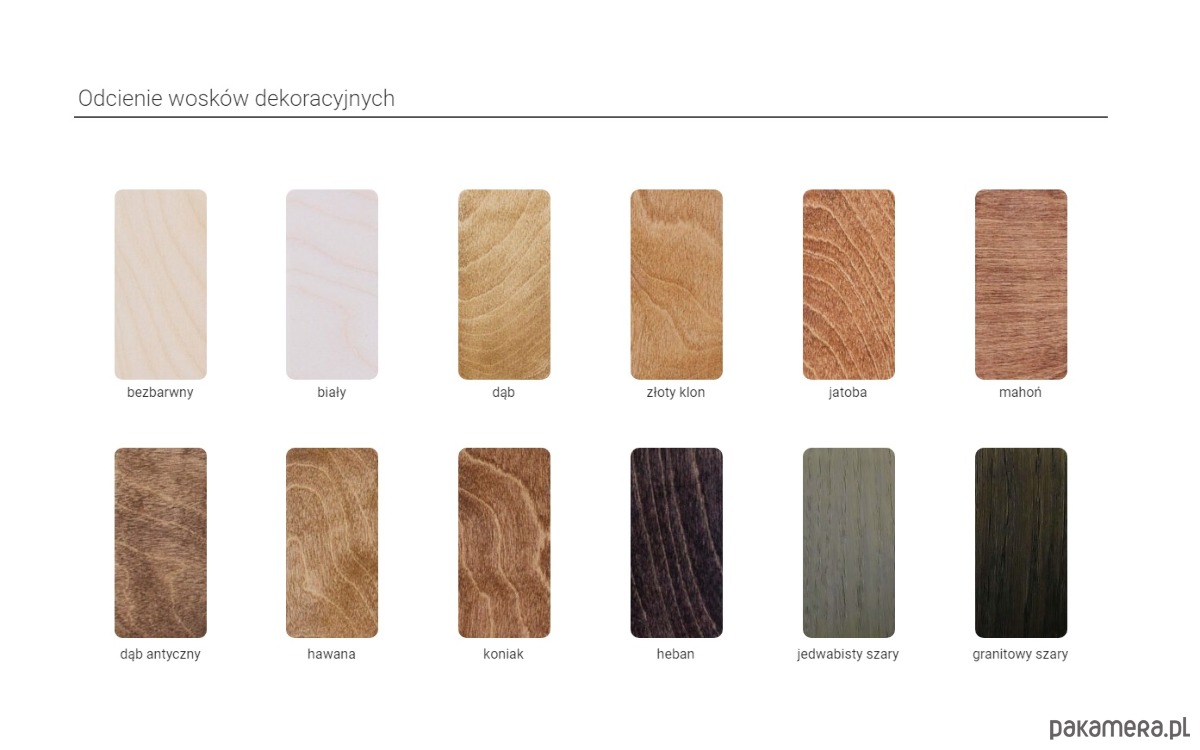 Wykończenie: Pokryty dekoracyjnym woskiem, a następnie zabezpieczony woskiem twardym.