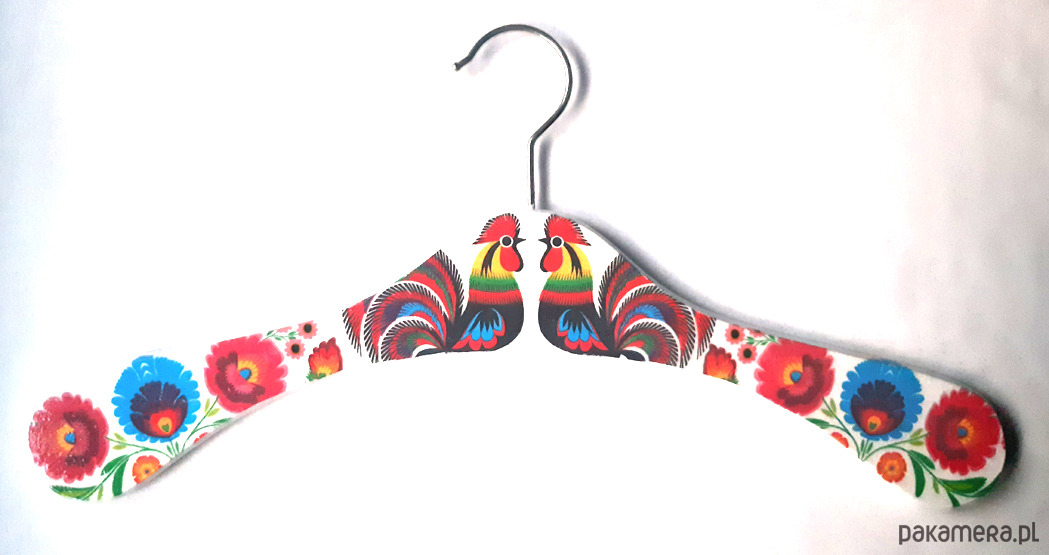 drewniany wieszak ozdobiony metodą decoupage, wykończony farbami akrylowymi i zabezpieczony wielokrotnie lakierem, dwustronny, długość 42 cm